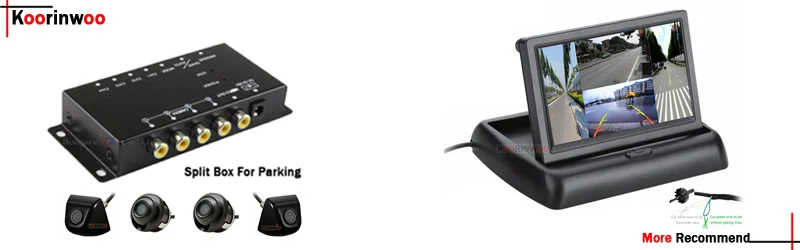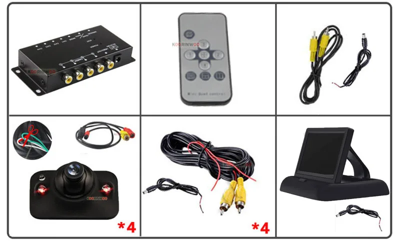 Монитор Koorinwoo автомобильный с CCD 360, круглым дистанционным управлением, для 4 камер, 4 канала, левый и правый, камера заднего вида, боковая