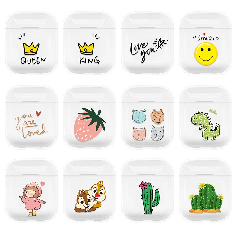 Для Airpods чехол милые, Мультяшные, прозрачные, жесткие беспроводные Bluetooth наушники чехол для Apple Air pods зарядная коробка для наушников