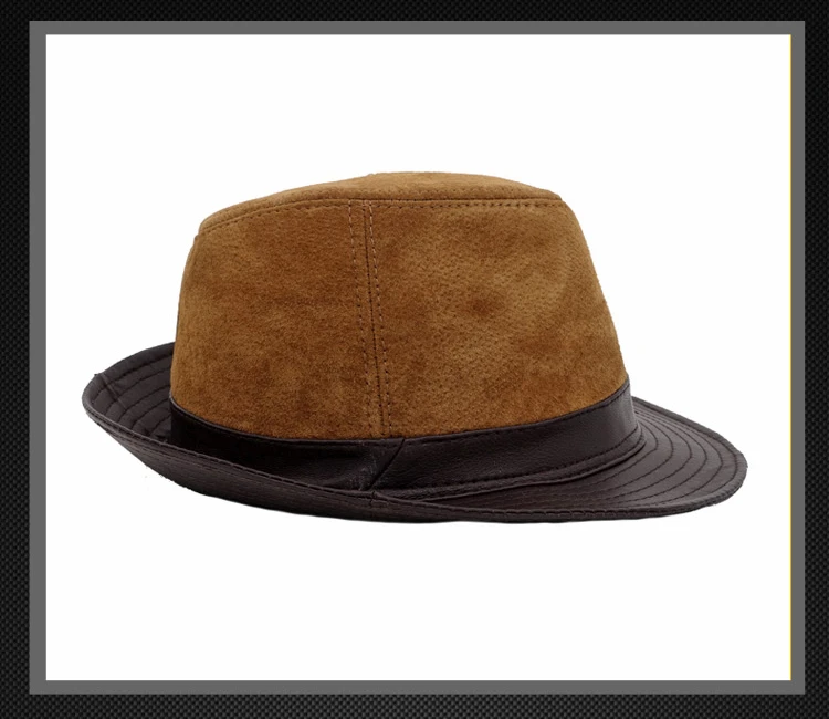Название продукта:Мужская шапка из натуральной овечьей кожи Fedoras, осенне-зимние мужские шапки в стиле джаз, модные брендовые кожаные шапки для мужчин