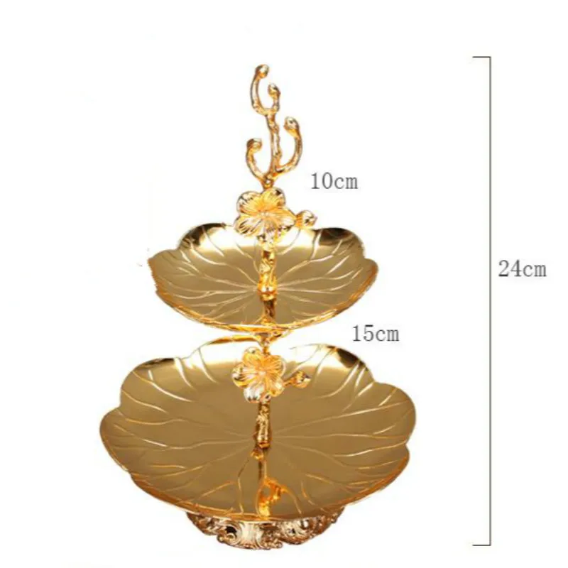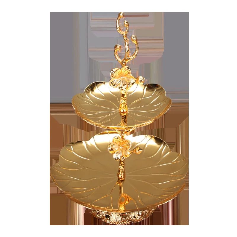 Двухслойная Золотая тарелка, подставка для свадебного торта, витрина для кексов, домашнее украшение стола, сладкий роскошный поднос для фруктов и чая, тарелки для зарядки
