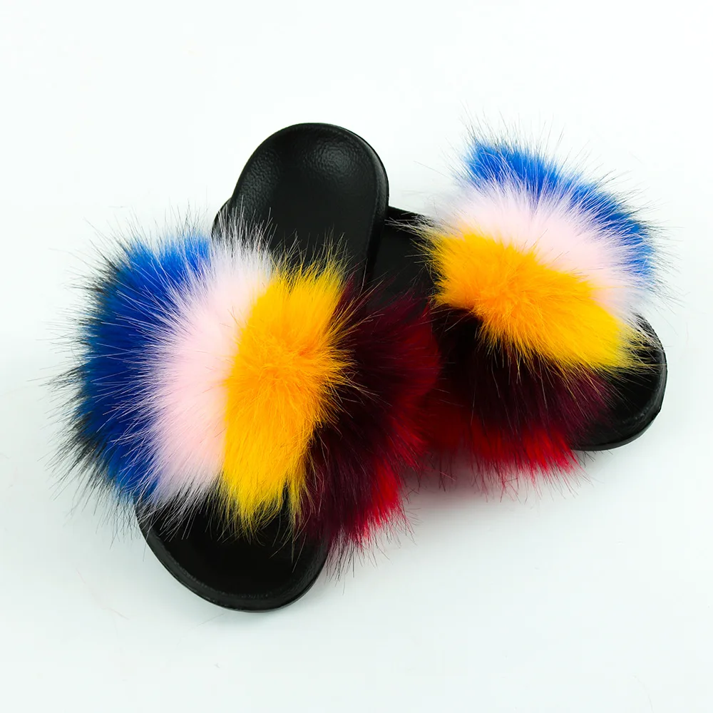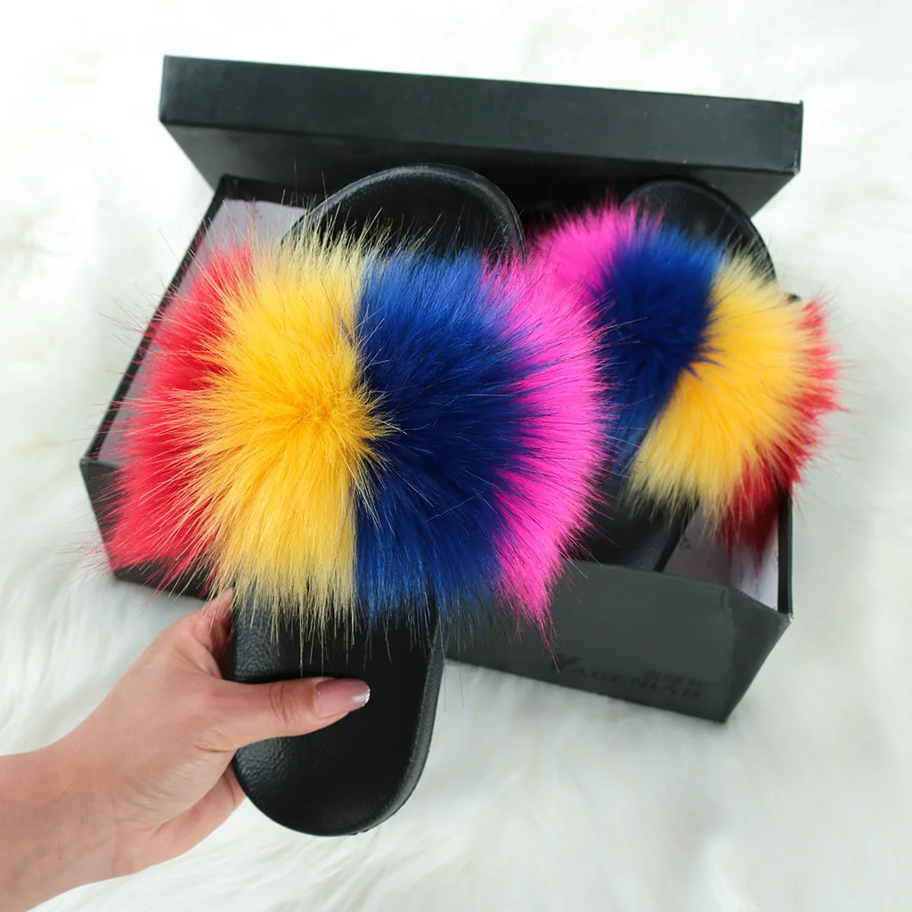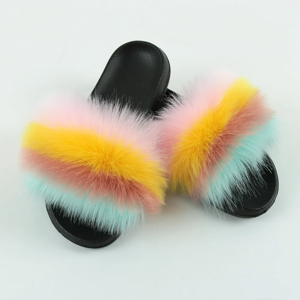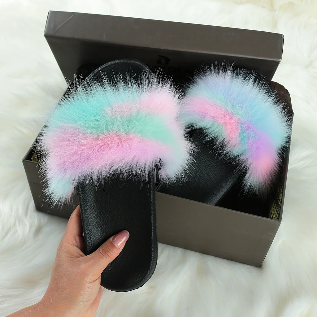 Летние шлепанцы; Женские шлепанцы из искусственного меха на открытом воздухе для женщин Роскошные женские пушистые тапочки, обувь на плоской подошве, Новое поступление 2020 Бесплатная Прямая поставка