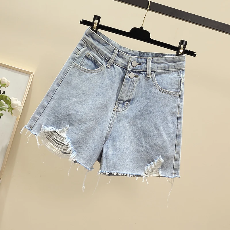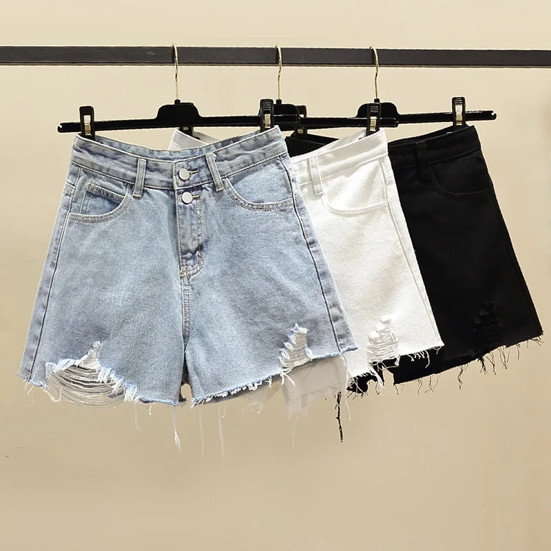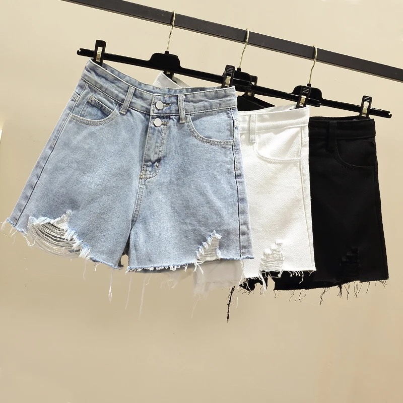 Летние классические винтажные сексуальные джинсовые шорты с дырками, женские повседневные повседневные универсальные женские шорты с высокой талией и широкими штанинами, джинсы