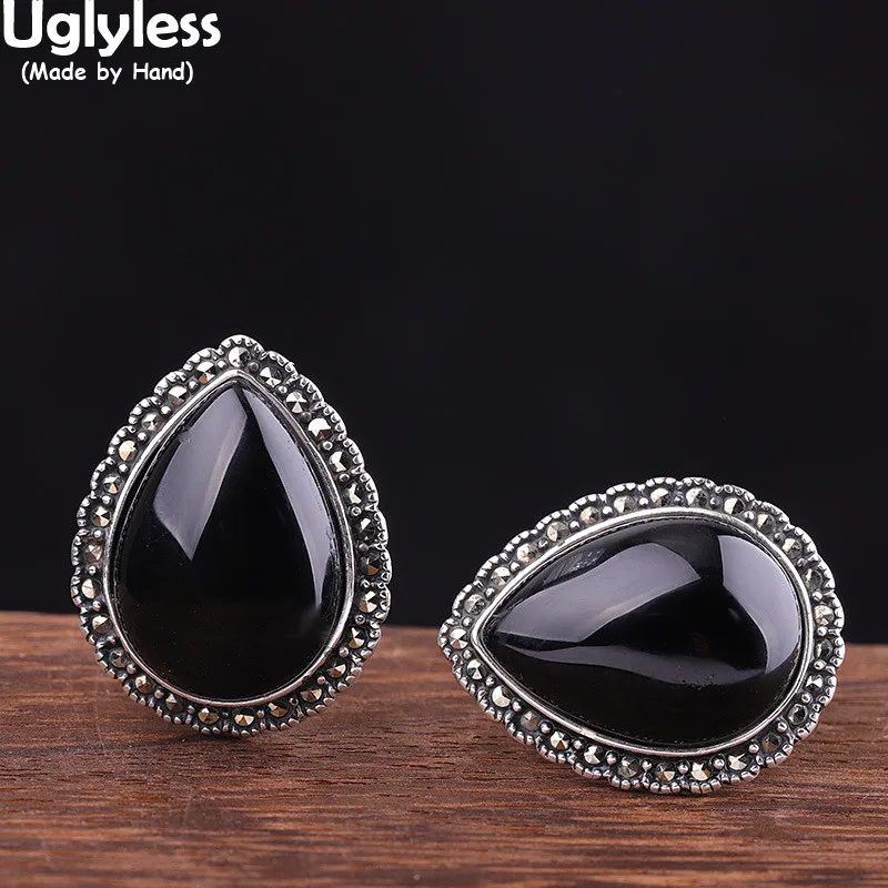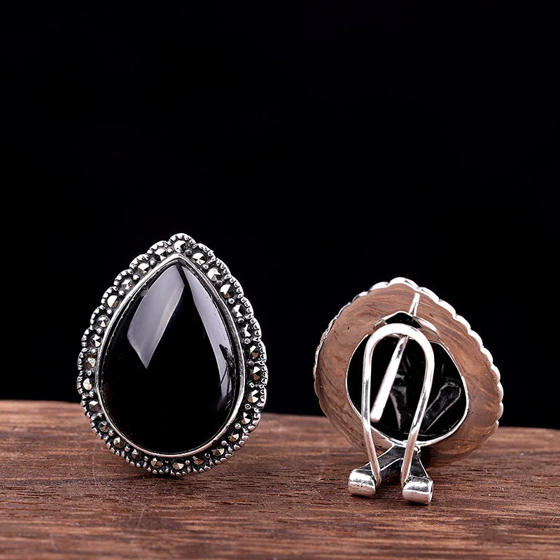 Женские Редкие серьги из черного агата без Углича, Крутое вечернее платье, ювелирные изделия из серебра 925 пробы, тайское серебро, марказит, бижутерия с драгоценными камнями