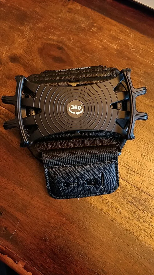 Хорошая вещь. Отлично фиксирует телефон в креплении и на руке. Аккуратно изготовлена. Поворот телефона происходит с усилием, т.е. при неловком движении крутиться не будет.