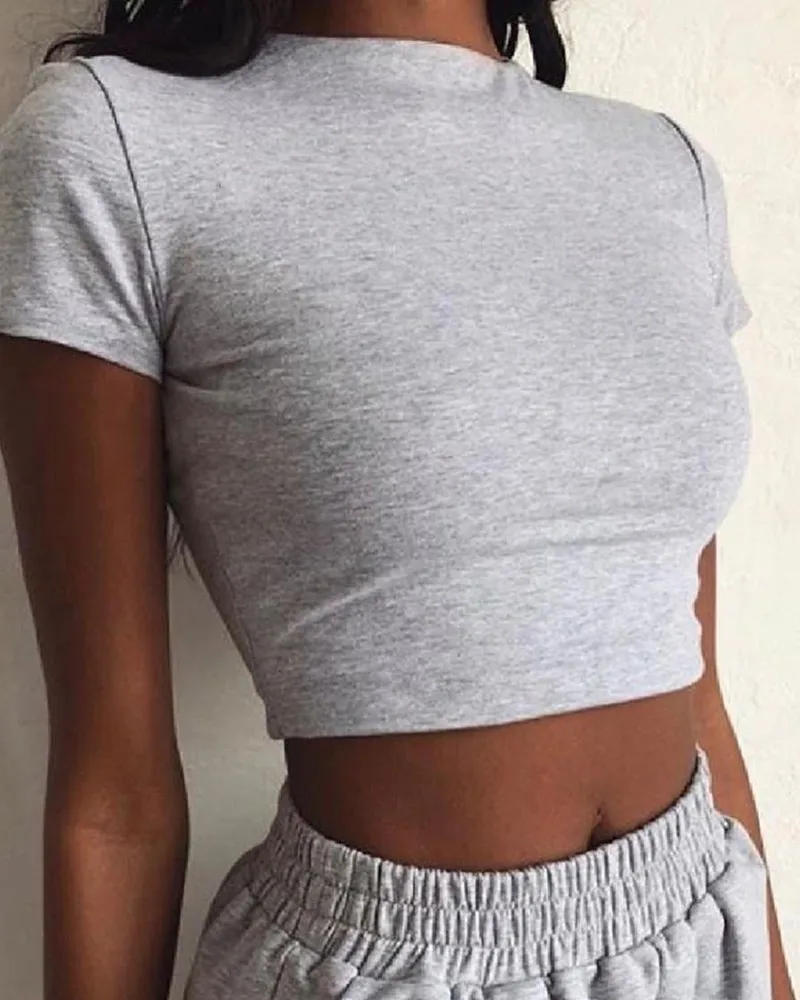 Женский летний повседневный комплект одежды из 2 предметов, укороченный топ с коротким рукавом для девочек и шорты с эластичным поясом, модная одежда