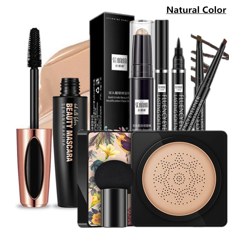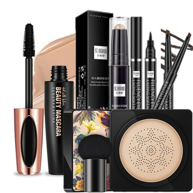 Новый набор для макияжа для женщин, набор модной косметики, BB-крем против морщин, водостойкая тушь, волшебная подводка для глаз, очаровательные брови