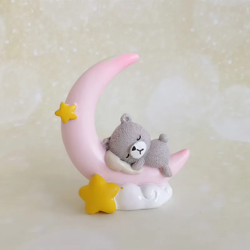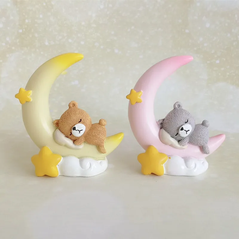 Скульптура медведя из смолы, с изображением Луны, спящего медведя, для домашнего рабочего стола, аксессуары украшения для выпечки, торта, подарок a4112