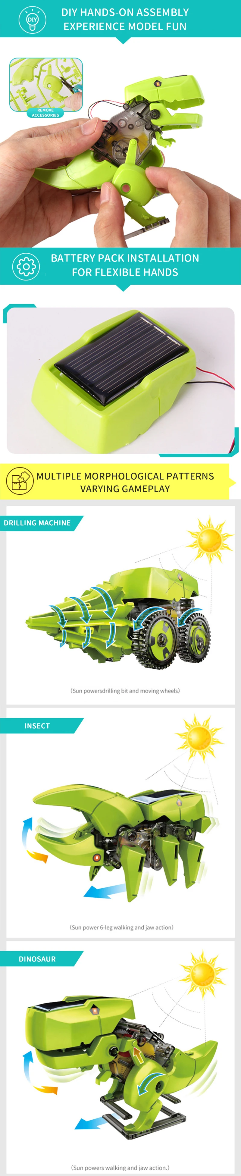 Креативный Робот-Динозавр на солнечной батарее, набор для сборки DIY, обучающие игрушки для мальчиков, технология, наука, подарок