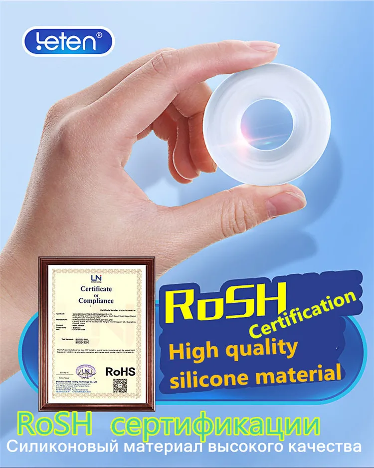 Силиконовое кольцо LETEN для задержки эякуляции, длительное трениро...
