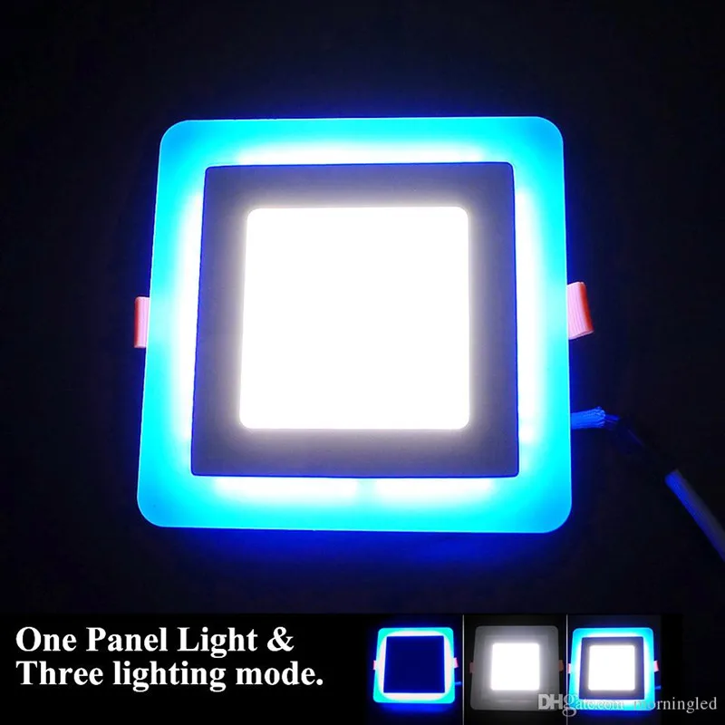 24 Вт круглыйКвадратный светодиодный панельный светильник, встраиваемая кухонная потолочная лампа для ванной, теплый белый + синийхолодный белый + синий, Бесплатная доставка