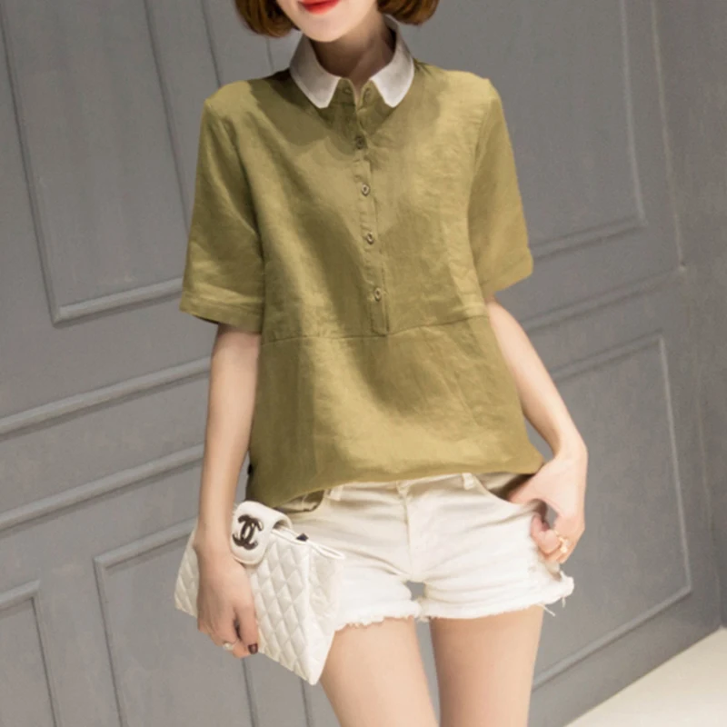 Рубашка женская хлопковая, с воротником Питер Пэн, винтажная, размера плюс, P805, женские свободные повседневные топы