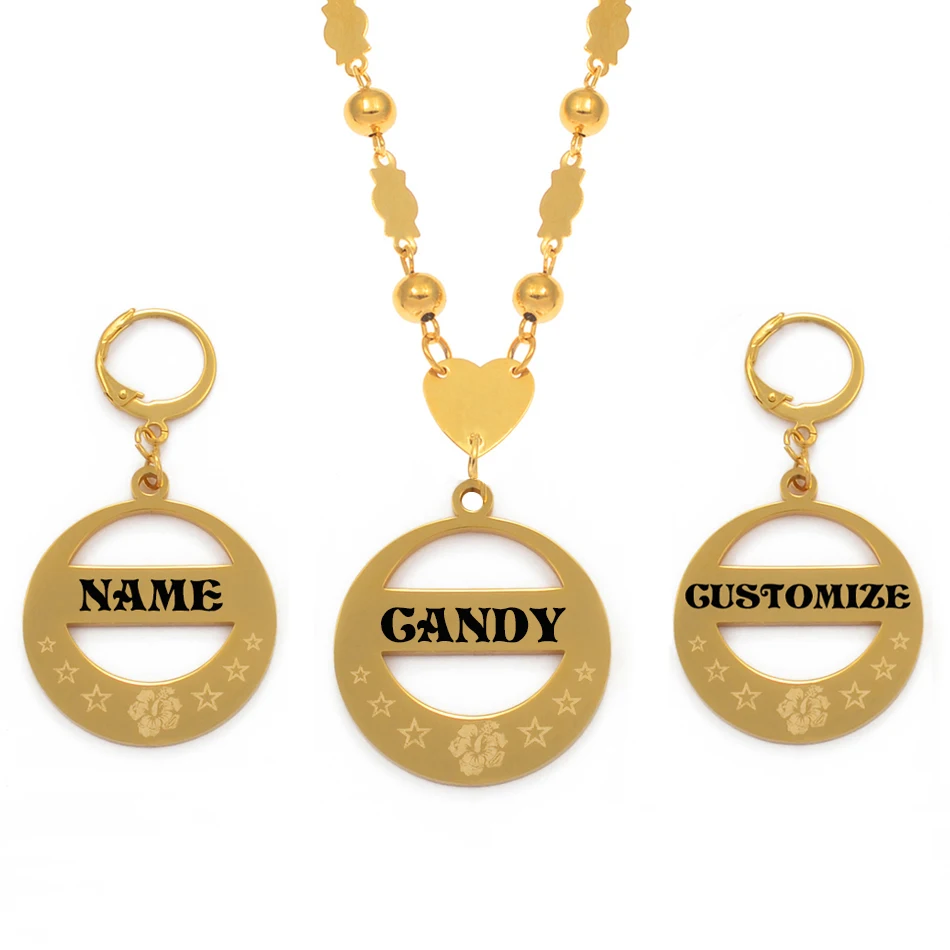 Набор украшений Anniyo с именем на заказ, кулон, бусины, ожерелья, серьги, персонализированная табличка с буквами, гавайский Гуам, Chuuk # 152721B