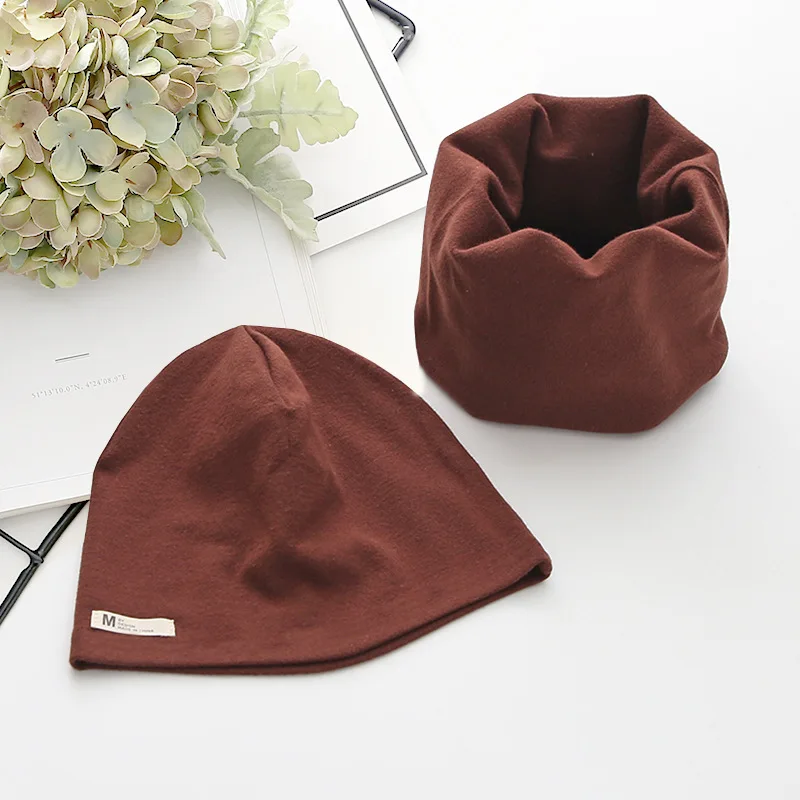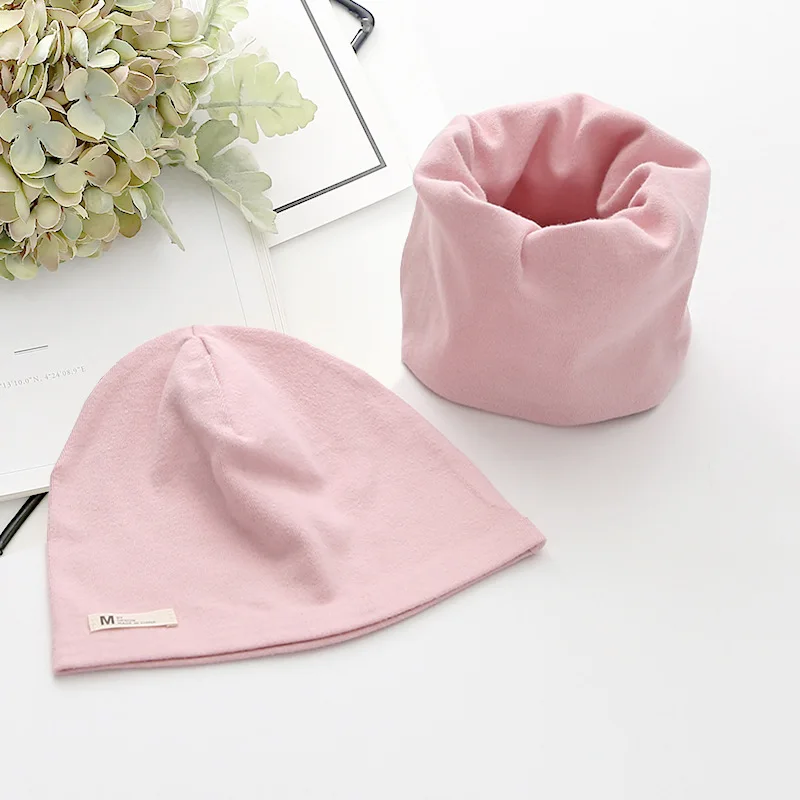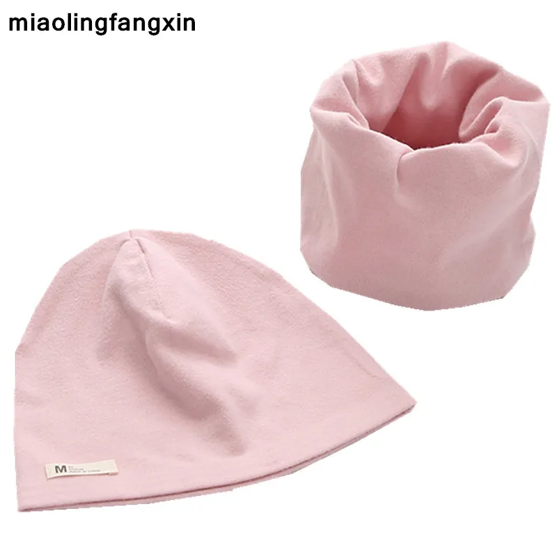 Новинка; Модный комплект шапки для девочек; Однотонный детский головной убор; Сезон весна; Теплый воротник; Детские шапочки; Хлопковые детские шапки; Шарф