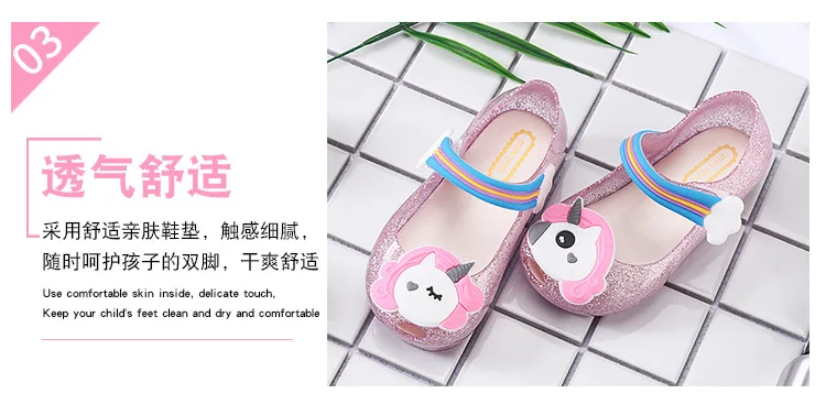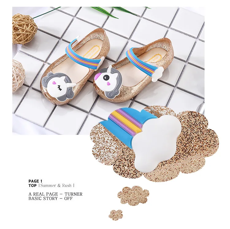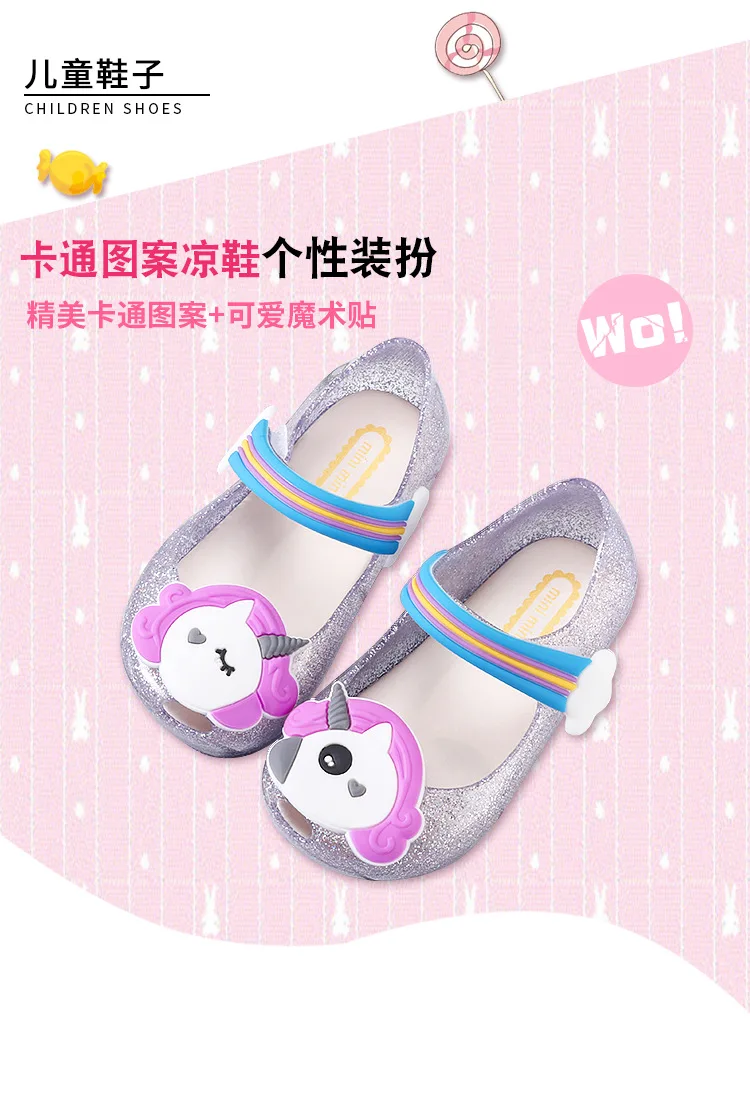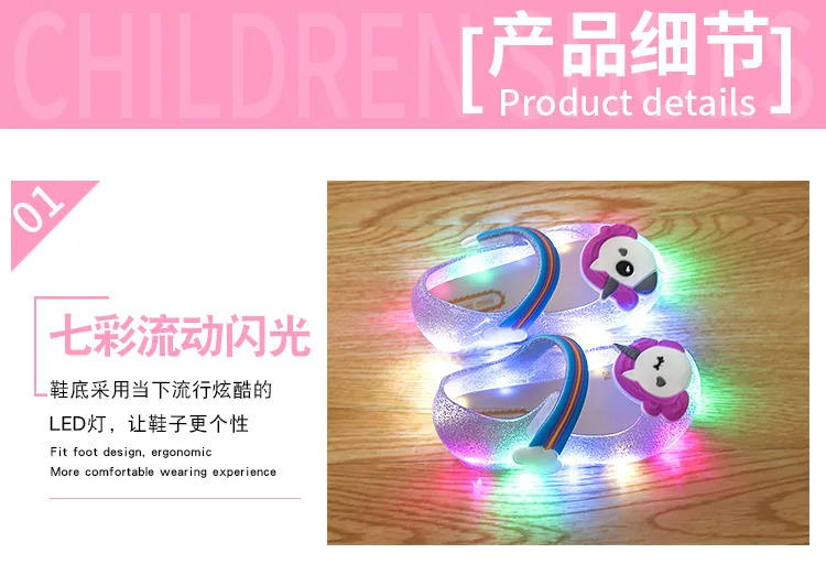 Детские сандалии-желе, светодиодная обувь для маленьких девочек, летние босоножки, плоская подошва, в виде единорога, для начинающих ходить детей, 2020