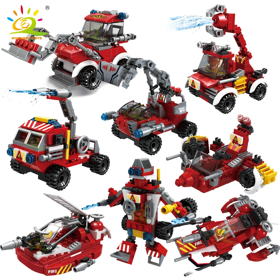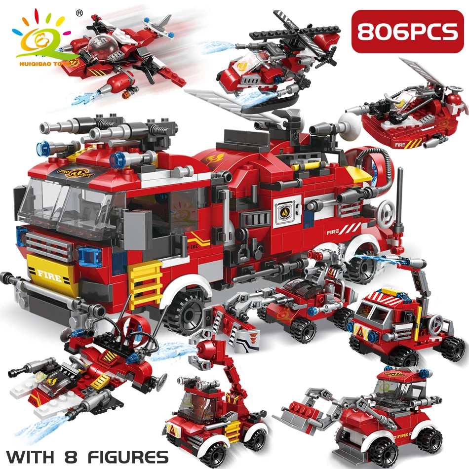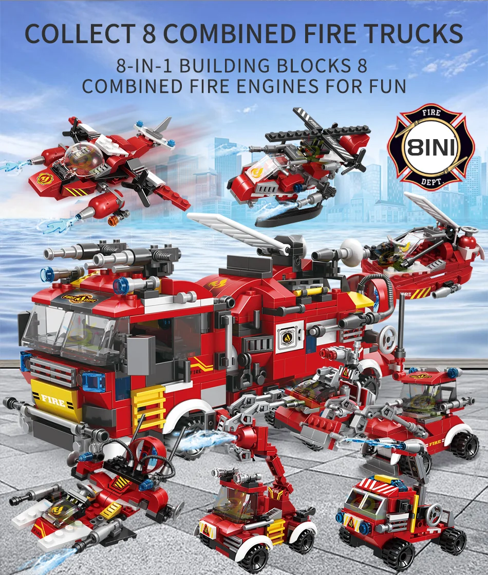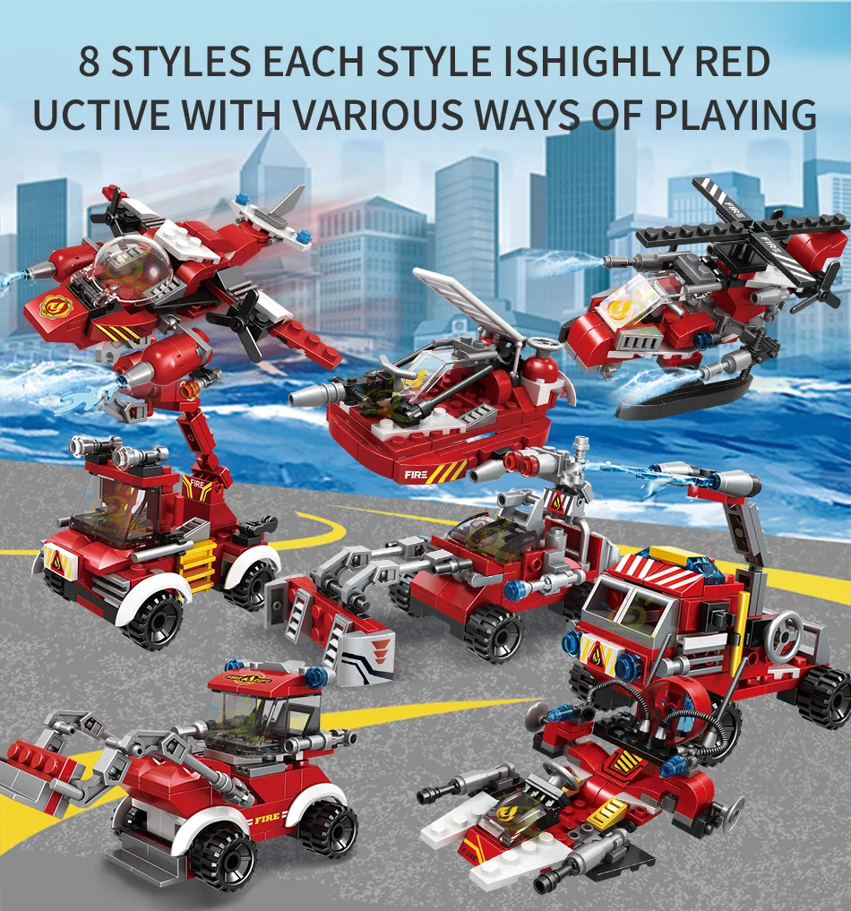 Конструктор 8 в 1 Город 806, модель пожарного грузовика блоков, фигурки пожарных кубиков для детей