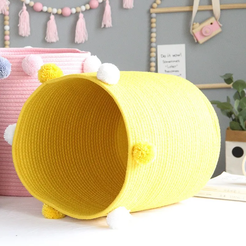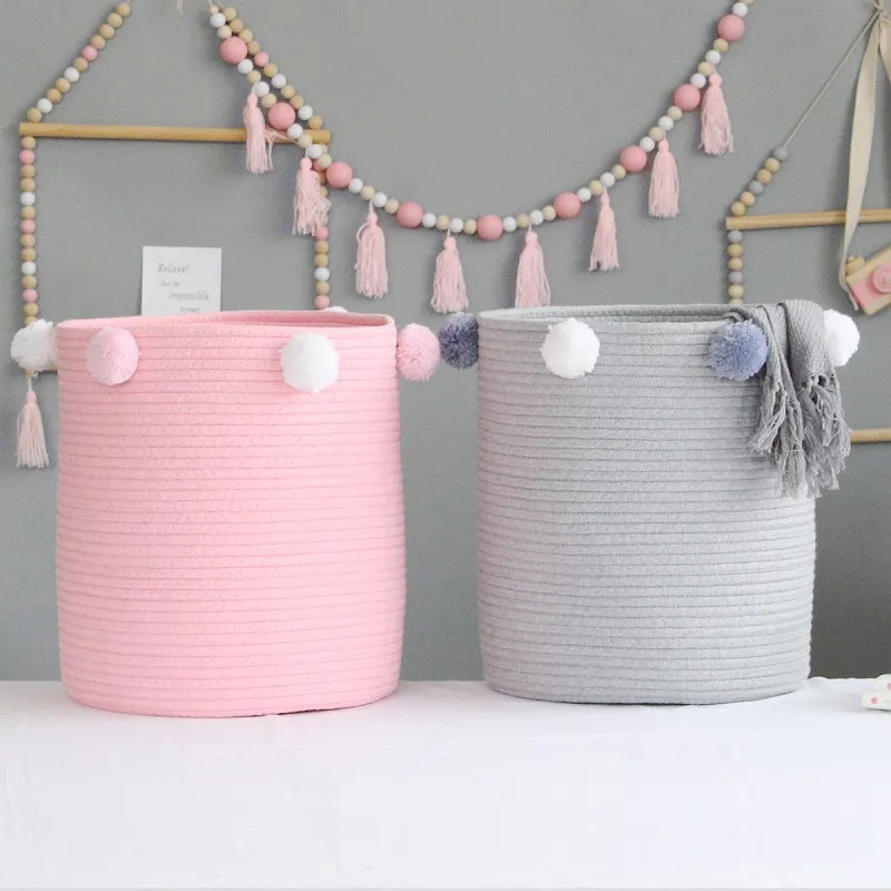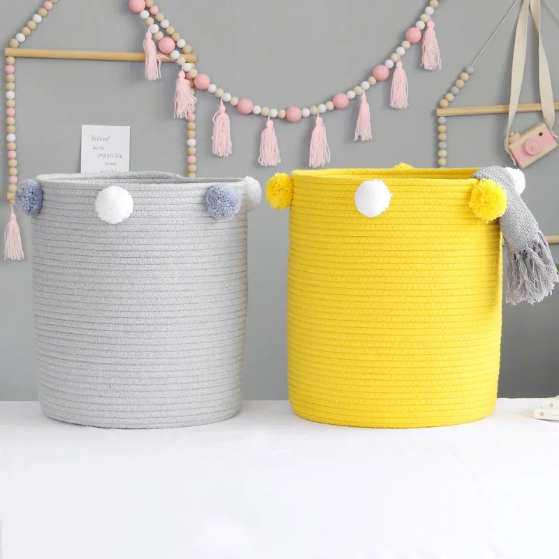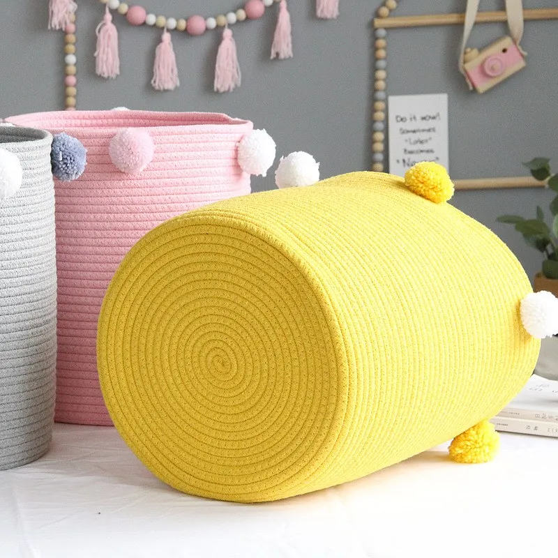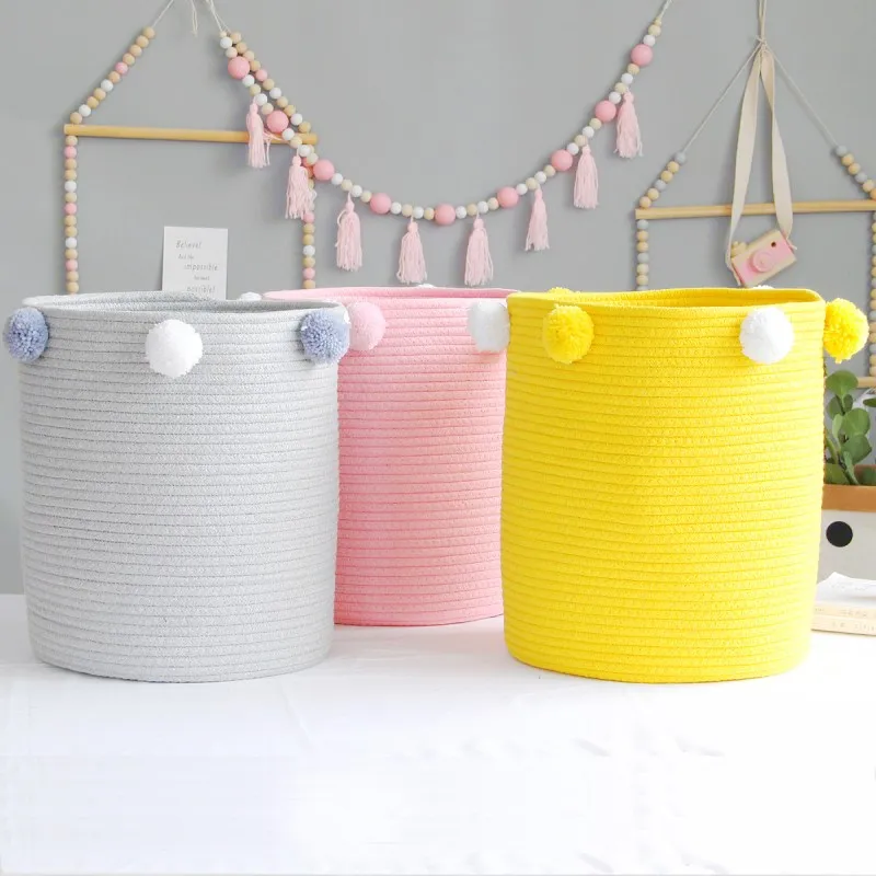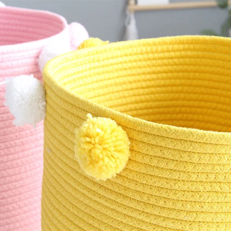 INS помпон корзина для хранения Скандинавская хлопковая веревка тканая корзина для грязной одежды корзина для белья Складная Настольная корзина для мелочей органайзер для игрушек корзина