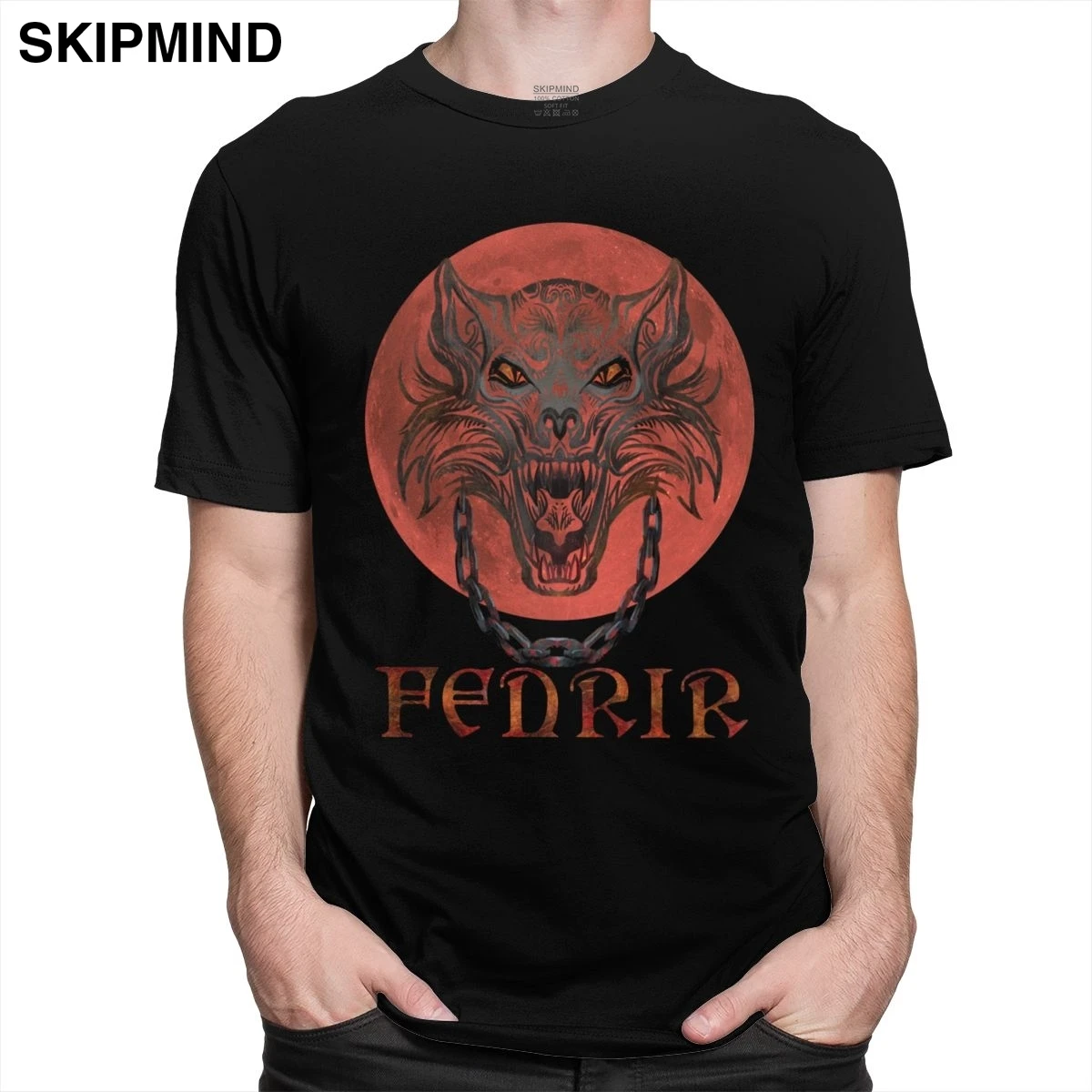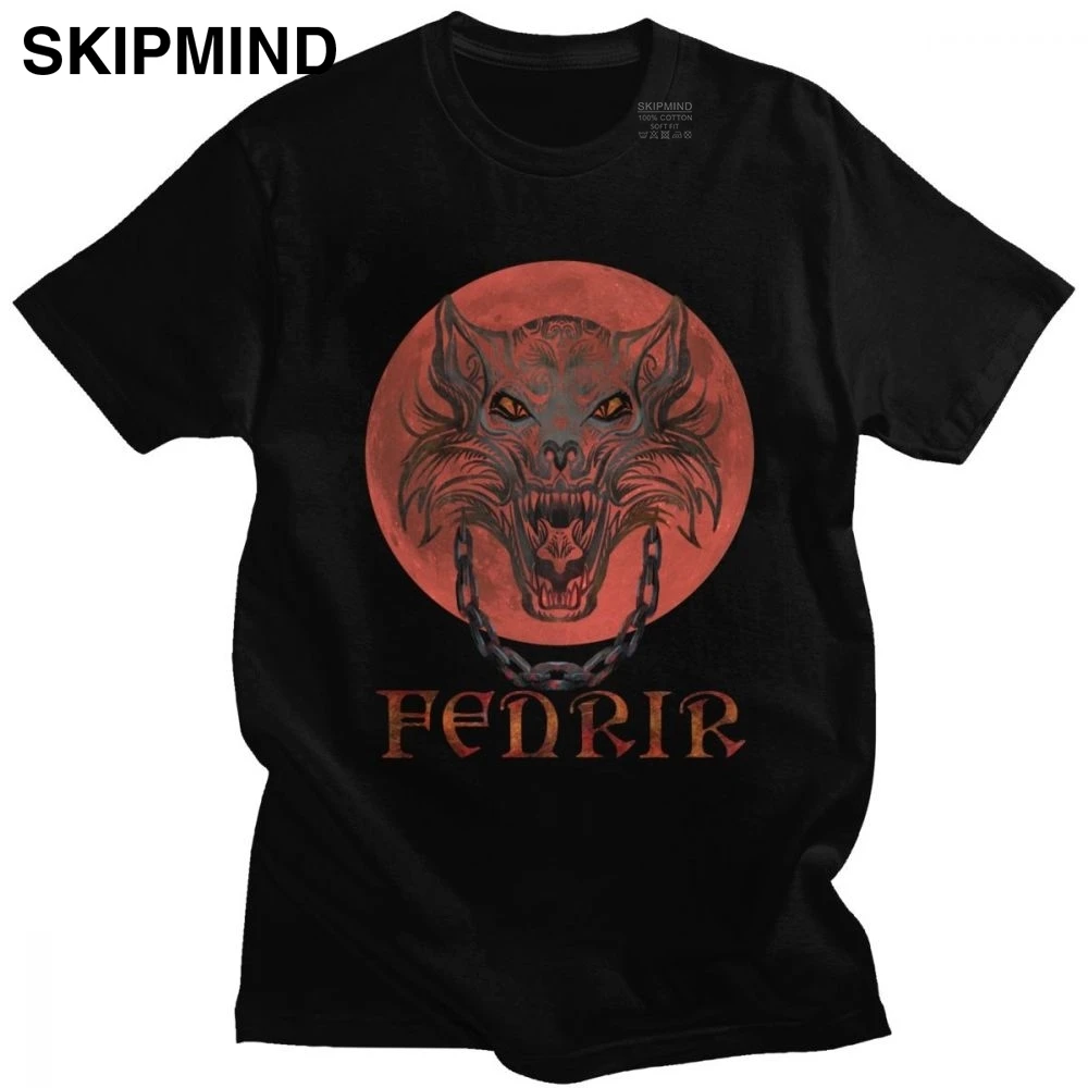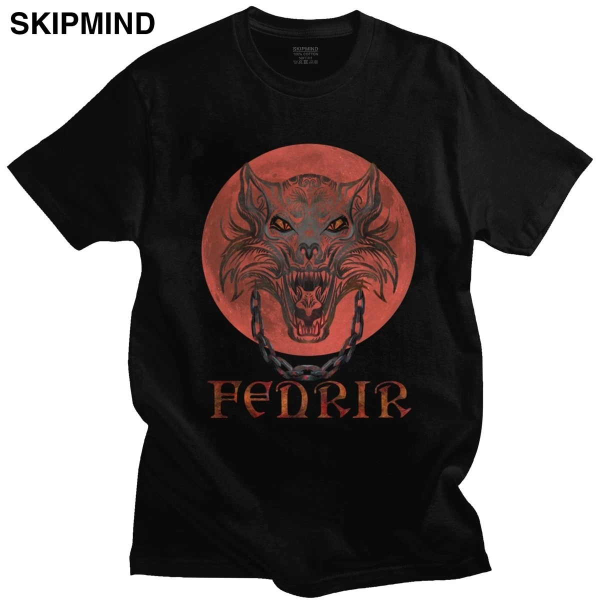 Футболка Fenrir Viking для мужчин, из мягкого хлопка, Повседневная футболка с круглым вырезом, с коротким рукавом, скандинавский волк, монстр с кровавой луной