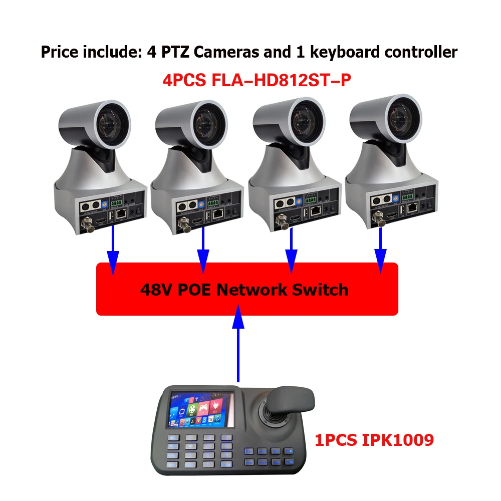 Оптический зум, Full HD 12X, SDI, IP, POE, PTZ, 1080p, аудиовход для видеоконференций и 1 контроллер клавиатуры Onvif