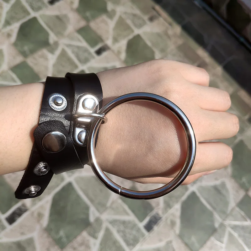 Большой чокер из искусственной кожи в стиле панк, ожерелье с большим кольцом, женская одежда на шею и запястье, многофункциональные Веселые чокеры, ожерелье, браслет