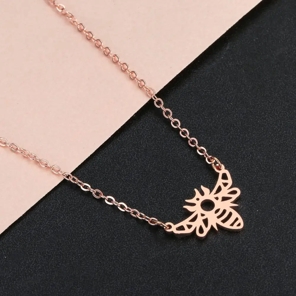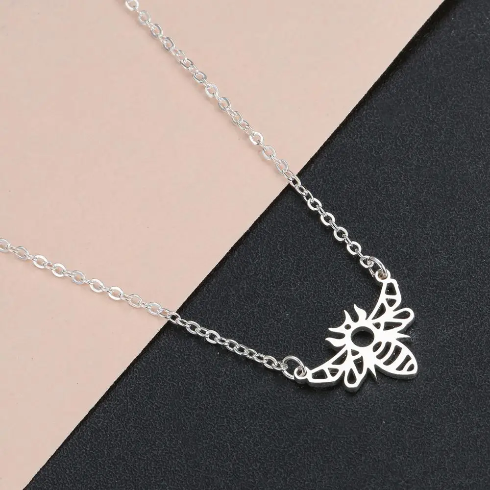 Чандлер из нержавеющей стали Oragami пчела ожерелье для женщин девушек любовь Кольер Femme Золотая цепь Геометрические Животные пчела кулон воротникМатериал: нержавеющая сталь
