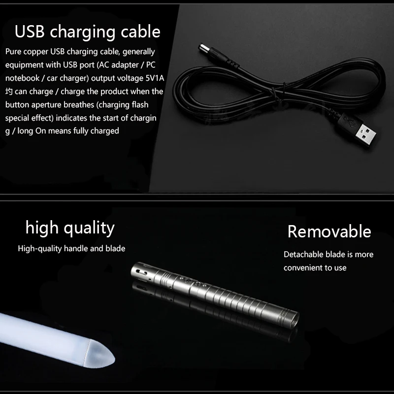 О товаре:Доступно 24 часаРазмер: Ручка 25 см (диаметр 30 мм)/длина меча 55 смМатериал: металлическая ручкаВ том числе: usb-кабель для передачи данных * 1/руководство * 1Светильник saber: монохромный светильник ing/изменяющий цвет светильник ing/3 комплекта звуковых эффектов/съемные мечи-тела/светильник-режим эффекта/функция памяти/металлическая кнопка диафрагмы/Высококачественный usb-кабель для зарядкиСветильник: само тело меча не излучает светильник/это hilt главный светильник + светильник s тела меча/не Телескопический светильник/корпус меча съемныйЦветная (RGB) светильник ing: светильник сабля имеет 11 Светильник цвета/красный/оранжевый/желтый/зеленый/голубой/синий/фиолетовый/холодный белый/цвет небесно-синий/лед-синий/розовый/синий/розовый3 набора звуковых эффектов: каждый набор имеет звуковые эффекты вкл/выкл/режим ожидания (фон) звуковые эффекты/Боевые звуковые эффекты меча/звуковые эффекты качания/ударные звуковые эффекты/переключающие звуковые эффекты/звуковые эффекты низкого заряда батареи/звуковые эффекты зарядкиСветильник эффект: режим пламени/полная яркость Режим высокой, средней и низкой регулировка яркости/режим дыхания/сердцебиение/режим вспышки/боевой меч режим вспышкиРегулировка громкости и режим отключения звука: высокая громкость, средняя и низкая регулировка/функция отключения звукаФункция памяти: светильник с эффектом памяти/звуковая память