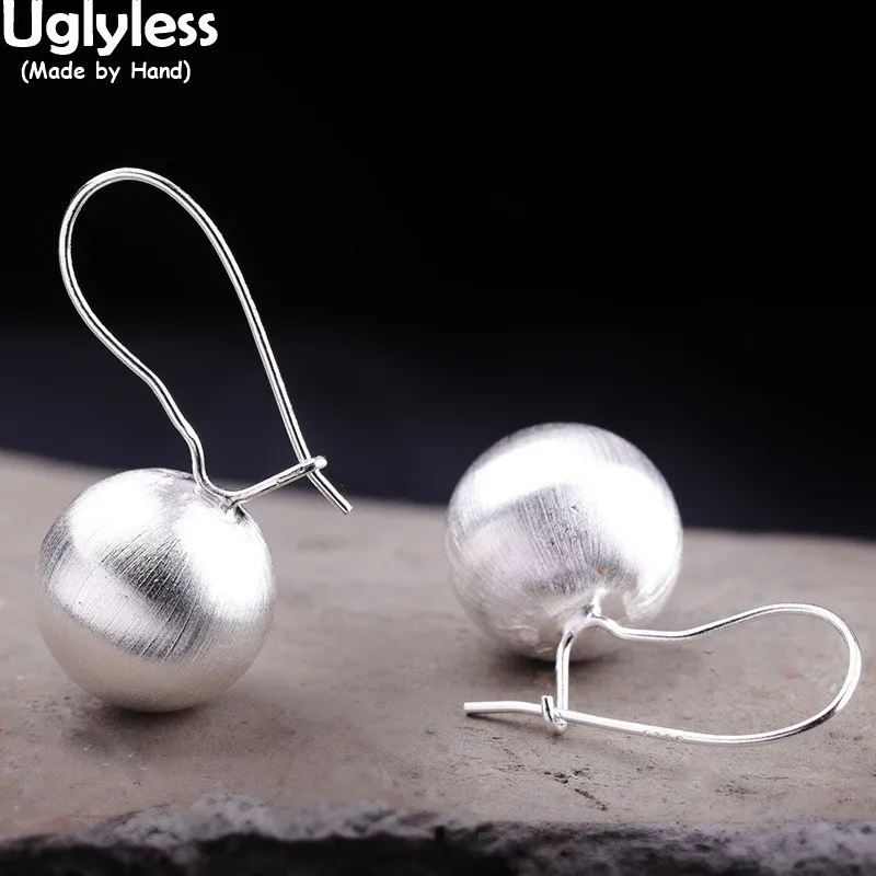 Uglyless 14 мм матовые полые шарики серьги-обручи для женщин Настоящее 925 пробы серебряные серьги ювелирные изделия милые серебряные конфеты Brincos Bijoux