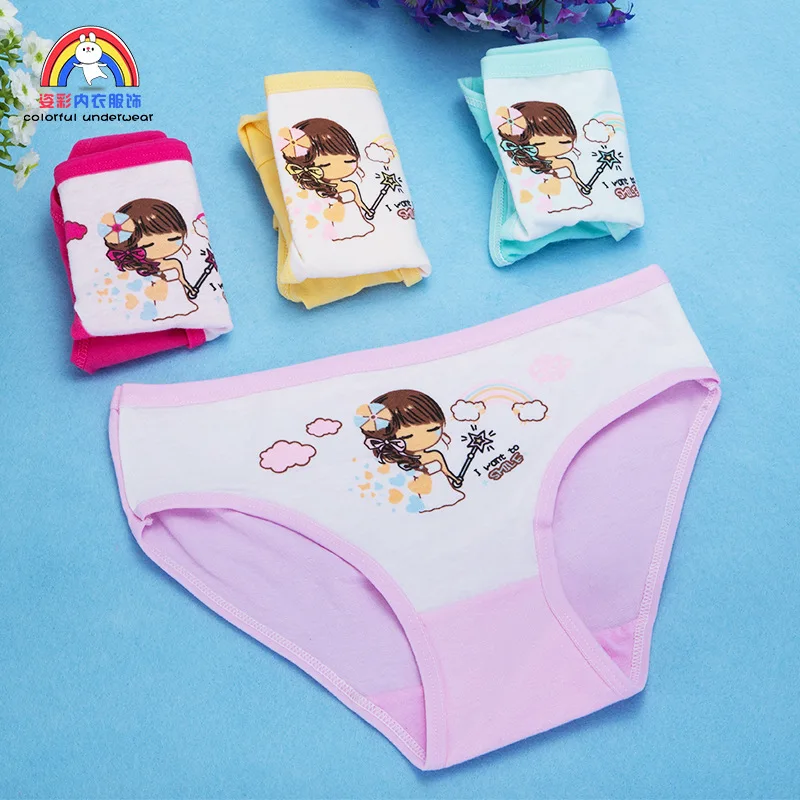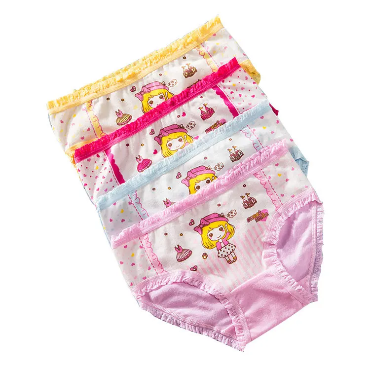 4 шт.Лот, нижнее белье для девочек, трусы с милым принтом, детские трусы, 100% хлопок, Симпатичные Цветочные Детские трусы, размеры От 3 до 11 лет