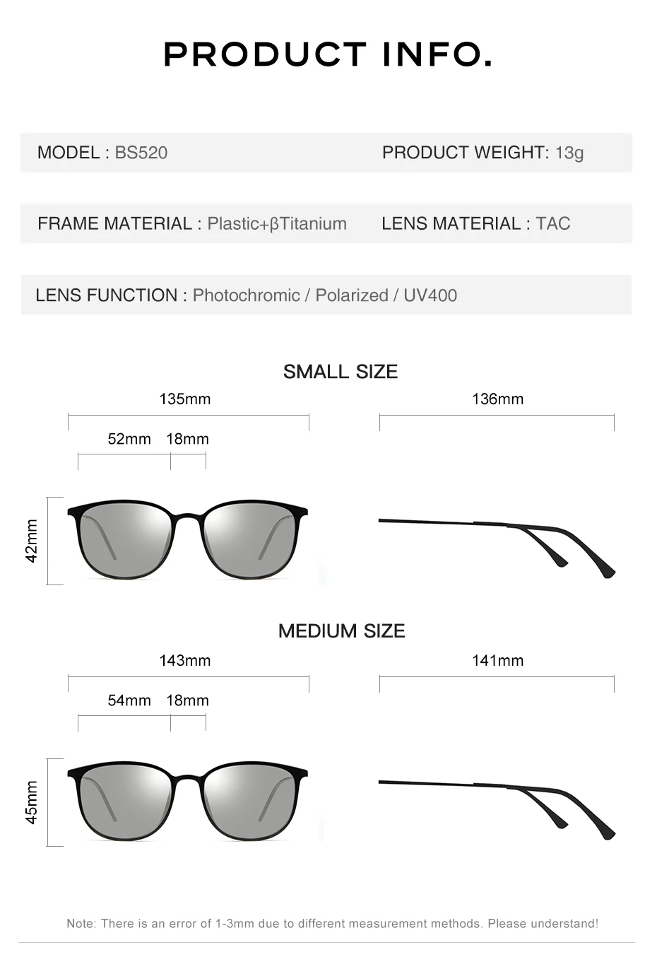 CAPONI овальные мужские солнцезащитные очки фотохромные поляризованные солнцезащитные очки для мужчин защита УФ-лучей супер светильник маленькие размеры очки для глаз BS520