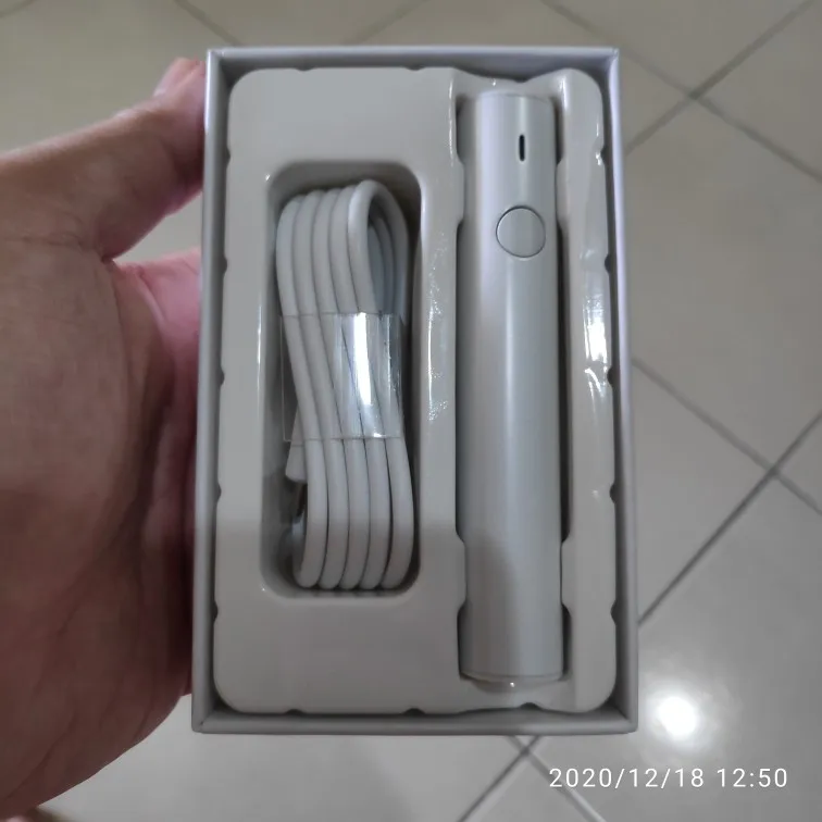 Ритейл упаковка прибора. Компактный. Вся информация на упаковке и инструкция на китайском языке. Инструкция как пользоваться прибором есть на странице товара. По умолчанию сразу включается "красный" режим, т.е. для взрослых. Прибор пришел полностью разряженный. Зарядка до 100% заняла 30 минут. Нагрев происходит постепенно. Остывает тоже не сразу. На максимуме - терпимо, не обжигает. Дополнительно он еще вибрирует. Через 10 секунд автоматически выключается. Дата производства 10/07/2020г.