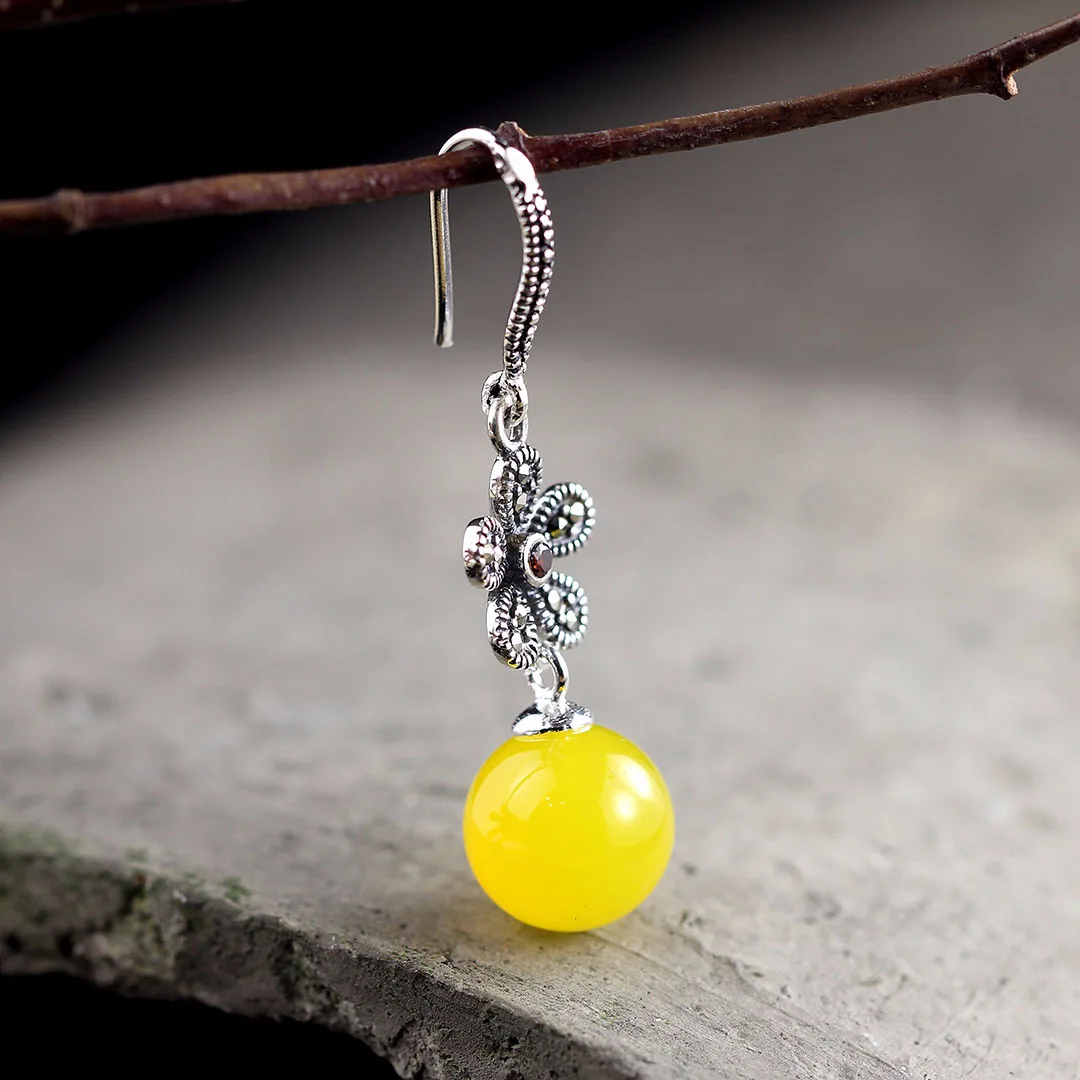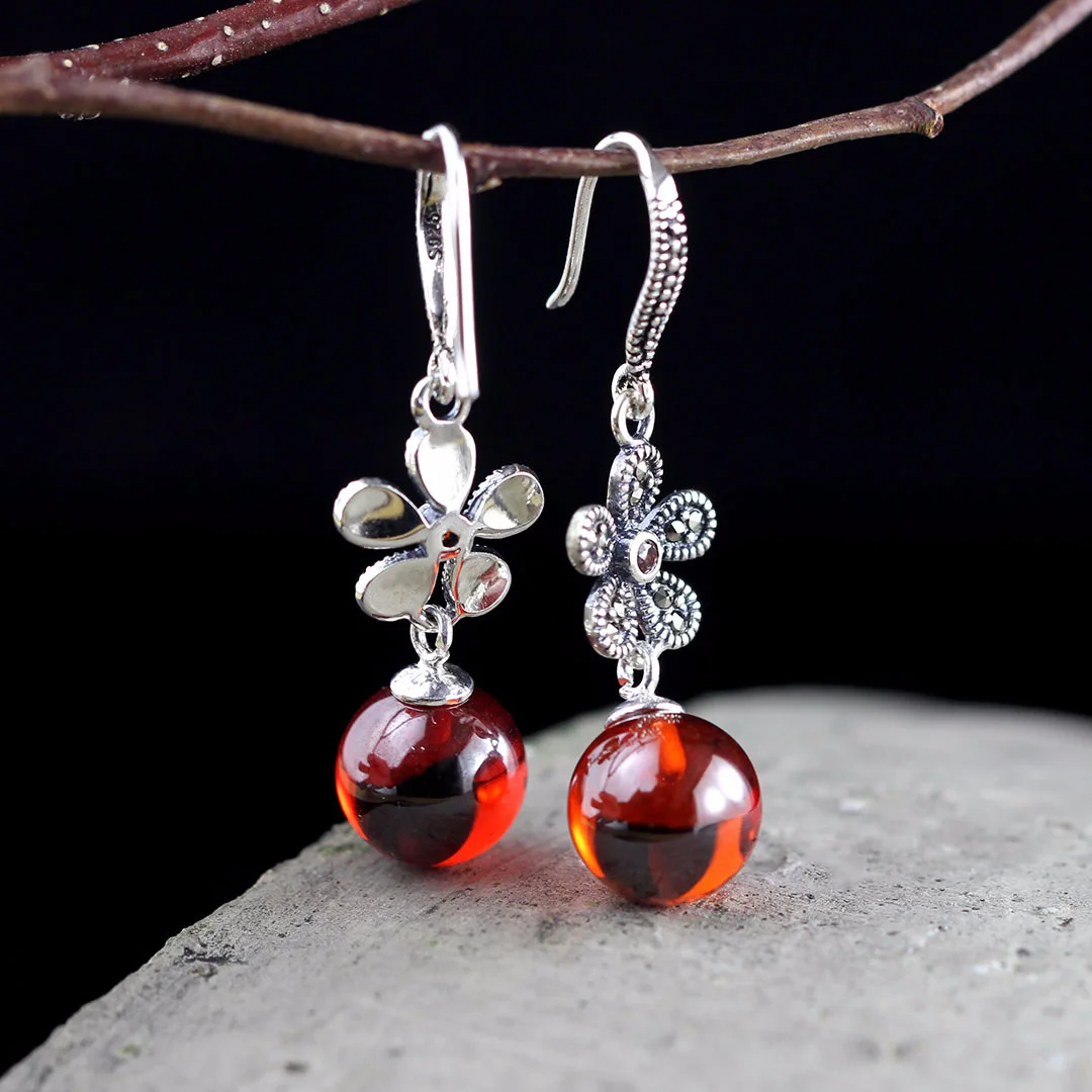 Uglyless Природа синий янтарные серьги-гвоздики ручной работы бабоч...
