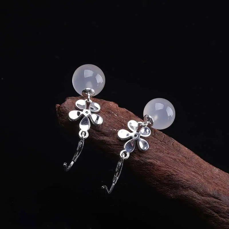 Женские серьги из серебра 100% пробы, с натуральным нефритом