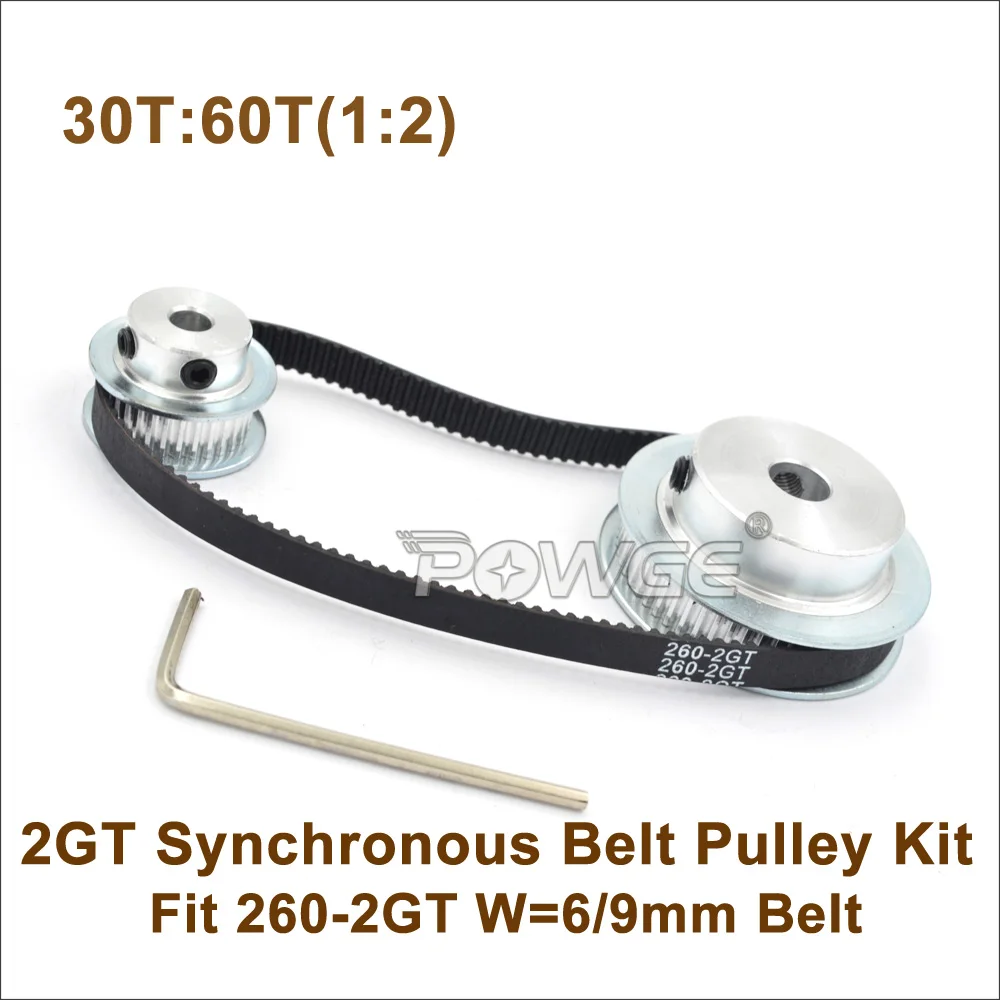 30Зубы:60Зубцы Набор синхронных шкивов 2GT1:2Коэффициент скорости Подходит для260-2GTПояс Ширина 6/9 мм Набор ременных шкивов для уменьшения скорости