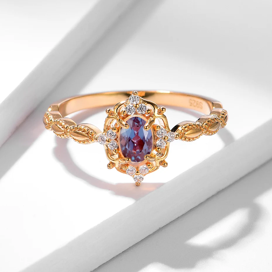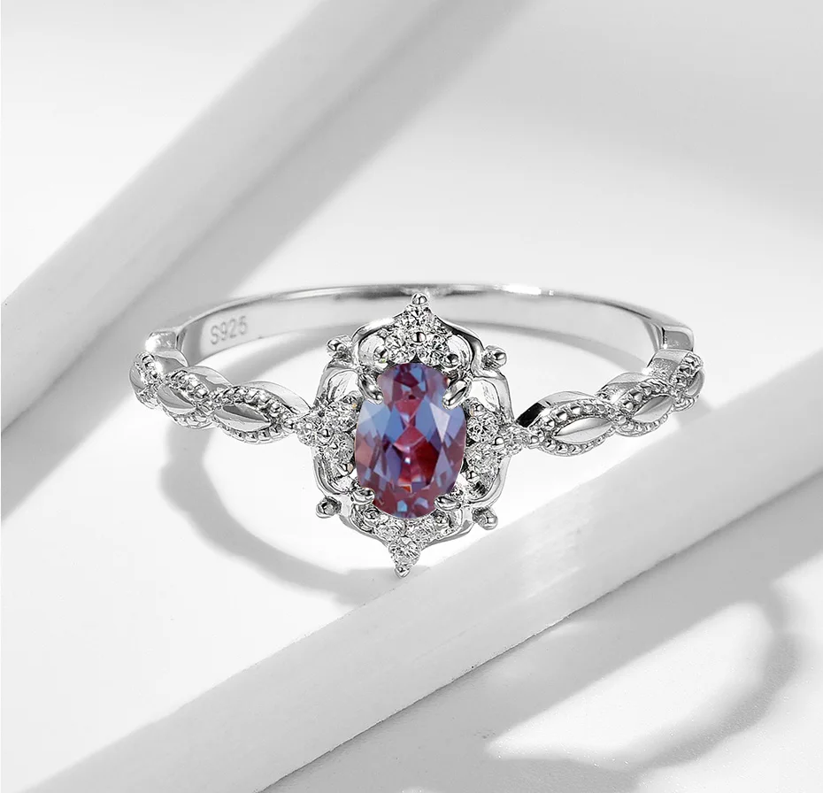 Кольцо женское из серебра 925 пробы, с выращенным Александритом, Размер 10