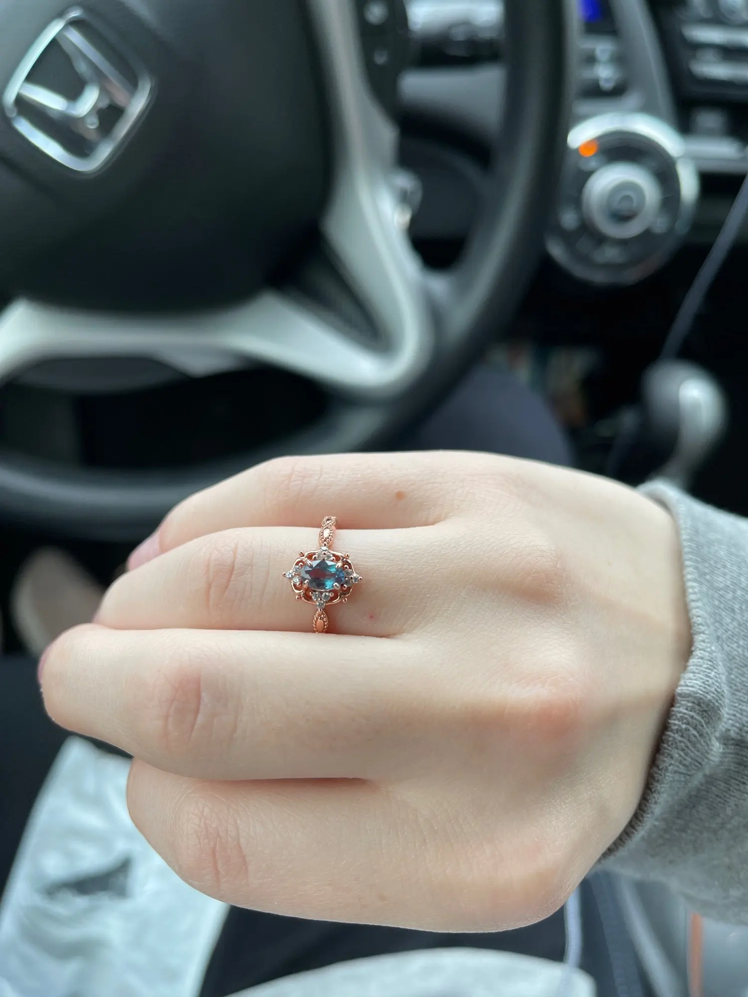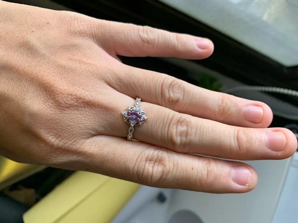 Очень понравилось колечко. Меняет цвет при разном освещении, изящное. Размер лучше брать на 1 меньше, как и говорили в отзывах.