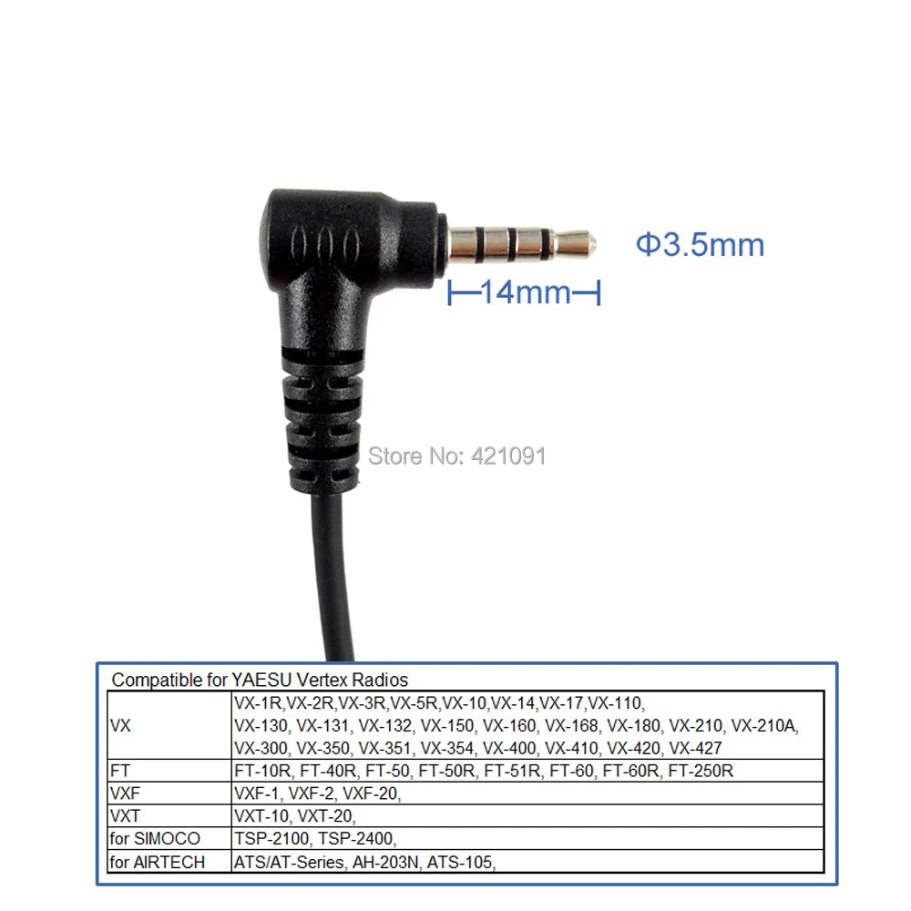 VX-1R, VX-2R, VX-3R, VX-5R, VX-8GR, VX-10, VX-14, VX-17, VX-110, VX-130, VX-131, VX-132, VX-146, VX-150, VX-160, VX-168, VX-180, VX-210, VX-210A, VX-300, VX-350, VX-351, VX-354,VX-400, VX-410, VX-420, VX-420A, VX-427FT-10R, FT-40R, FT-50, FT-50R, FT-51R, FT-60, FT-60R, FT-250RVXF-1, VXF-2, VXF-10, VXF-20,VXT-10, VXT-20,Для серии SIMOCOTSP-2100, TSP-2400,Для серии AIRTECHATS/AT-Series, AH-203N, ATS-105,Примечание:Этот наушник представляет собой walkie-talkie специальный наушник для YAESU, его нельзя использовать для мобильных телефонов. Если ваша радиомодель не указана выше, пожалуйста, посмотрите мой другой товар или напишите нам свой номер модели, тогда мы поможем вам найти тот, который вам подходит.