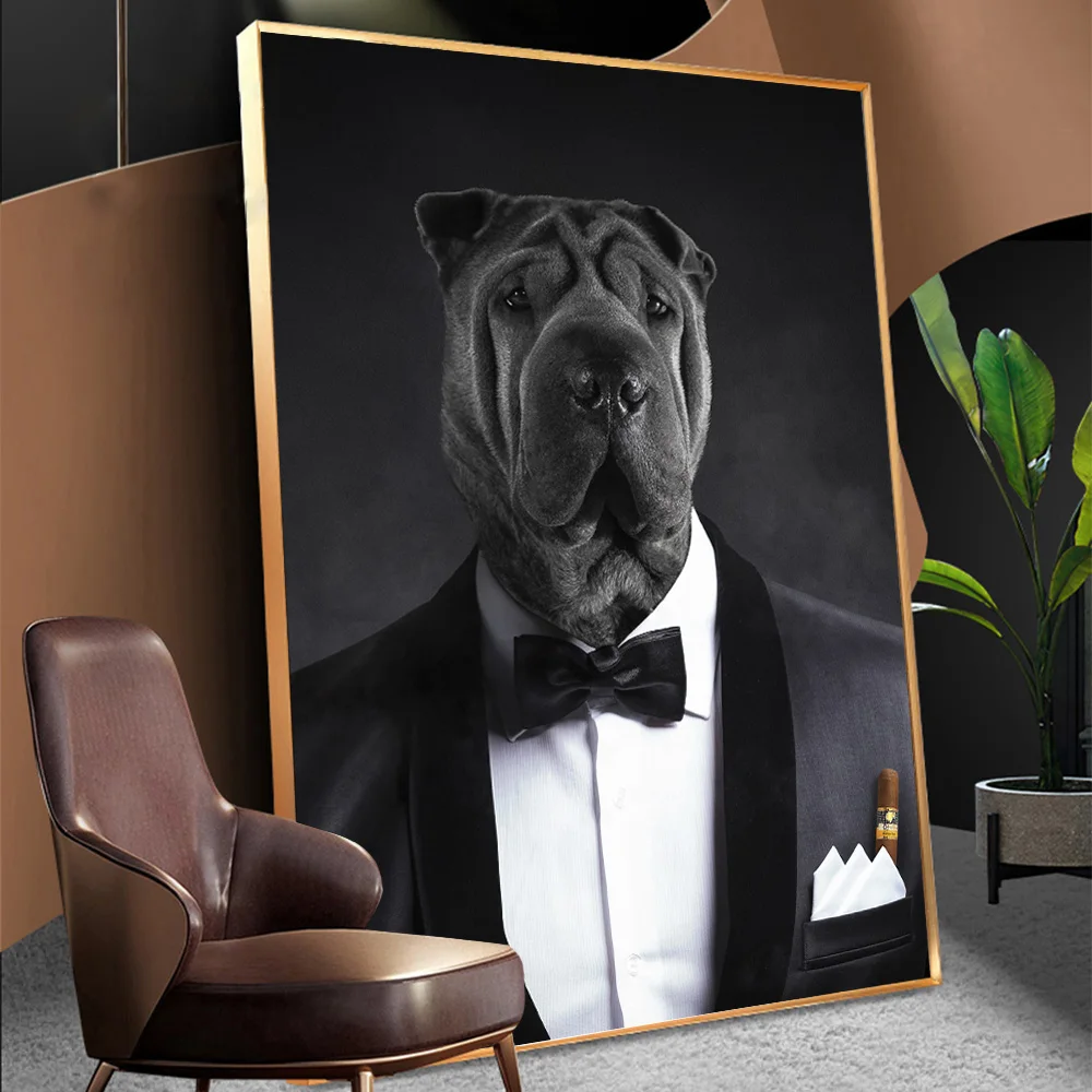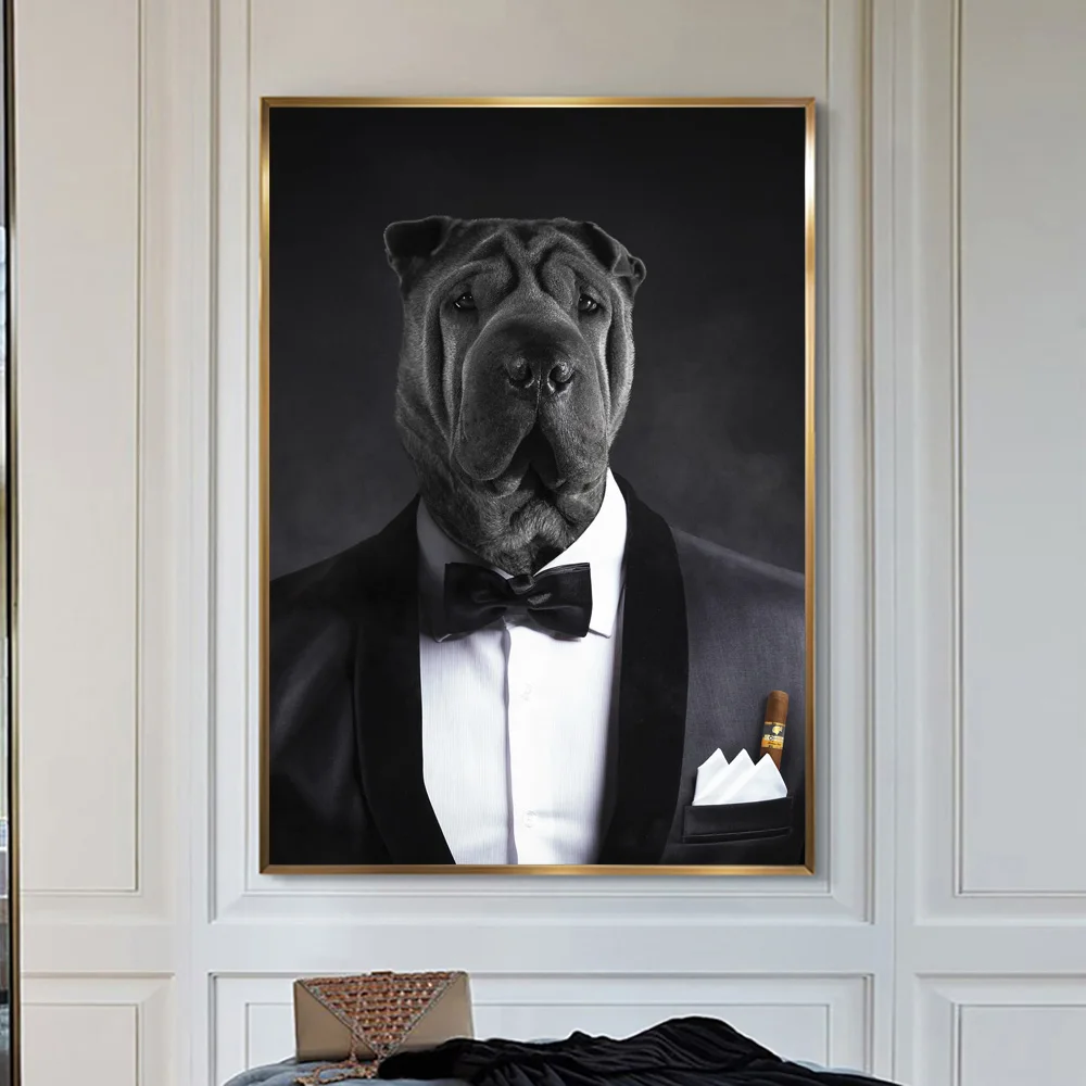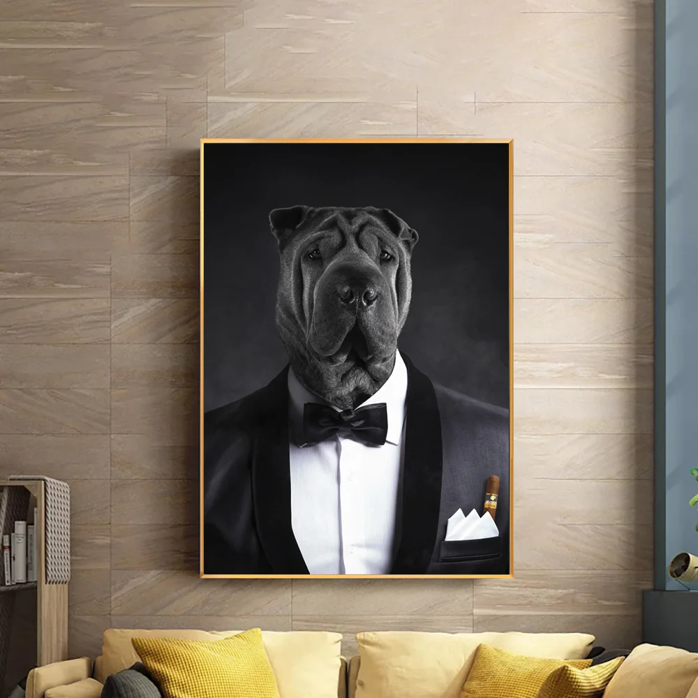 Черный Бульдог в костюме Humor, холст, настенное искусство, забавные животные, официальная одежда, плакат и печать, картина для домашних животных, украшение для рукоделия, подарок