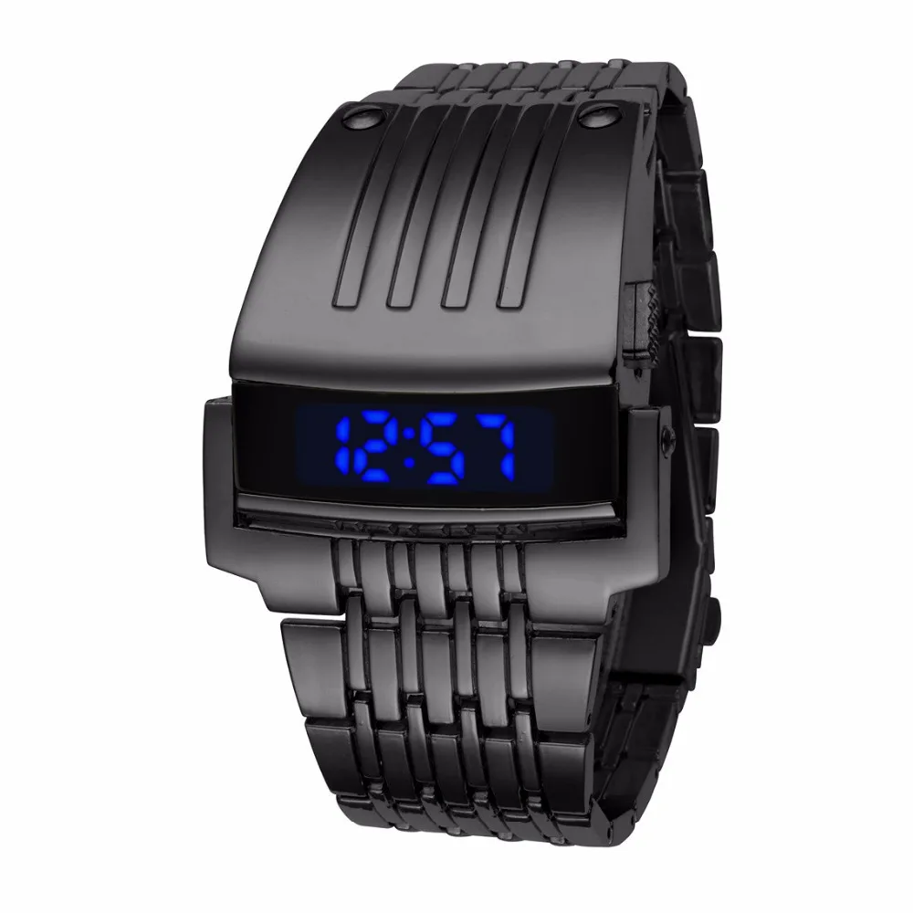 Часы наручные мужские электронные с ЖК-дисплеем из нержавеющей стали