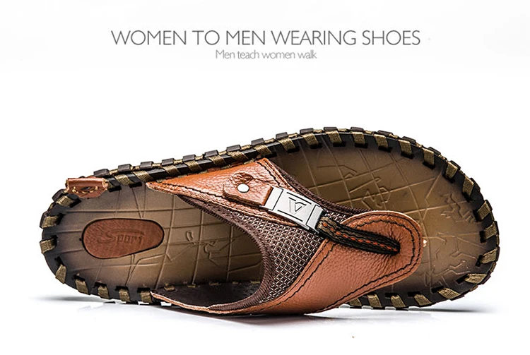 Шлепанцы BIMUDUIYU мужские из натуральной бычьей кожи, пляжные санд...