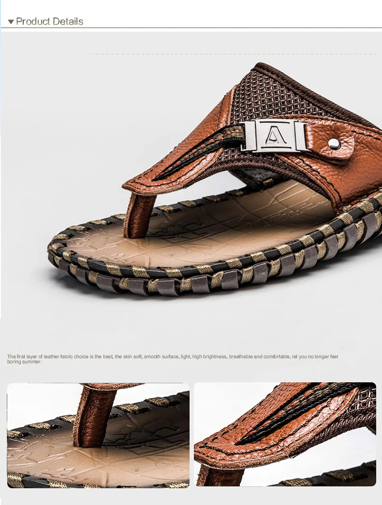 Шлепанцы мужские кожаные, дышащие, плоская подошва, модная летняя обувь, 2021
