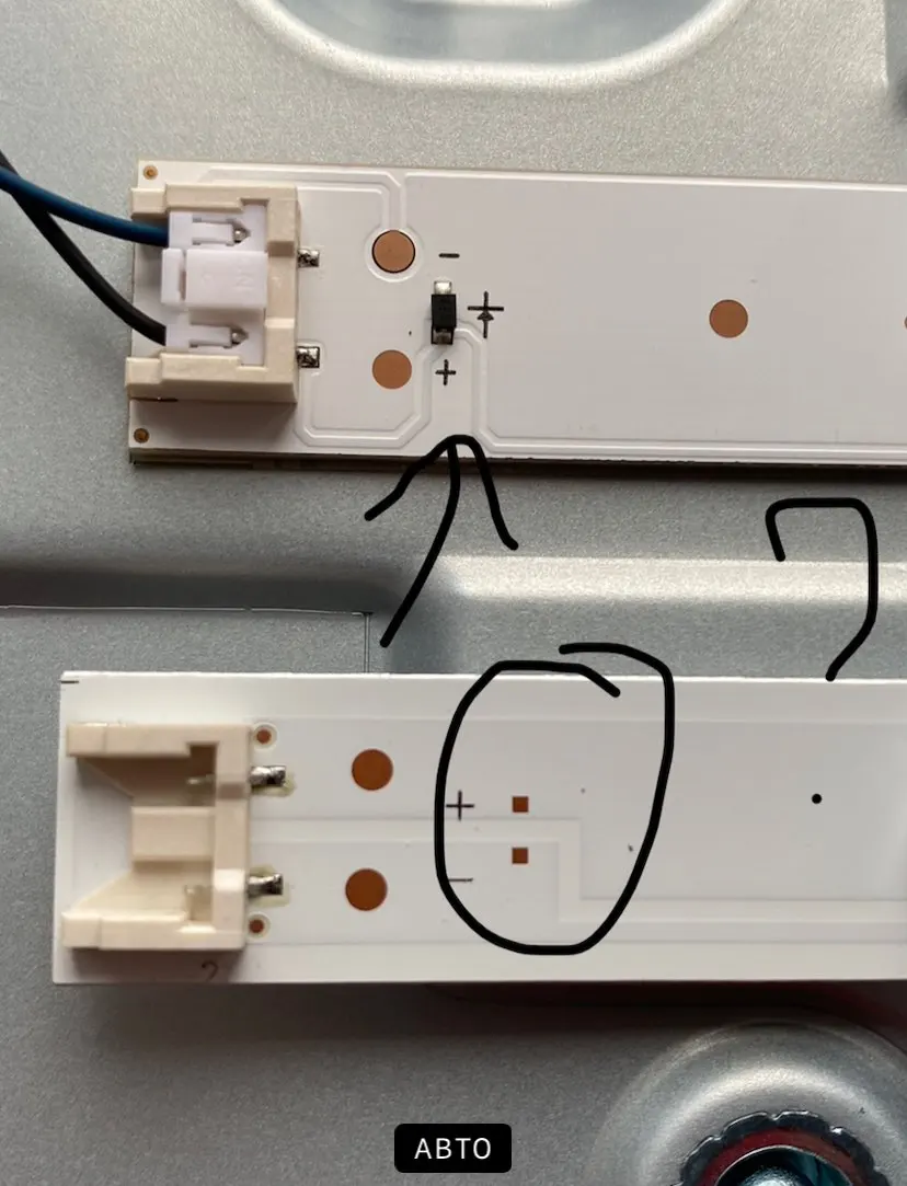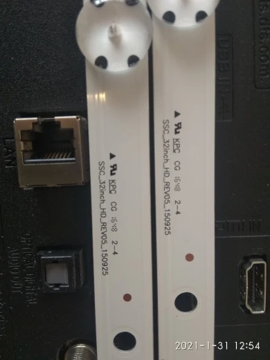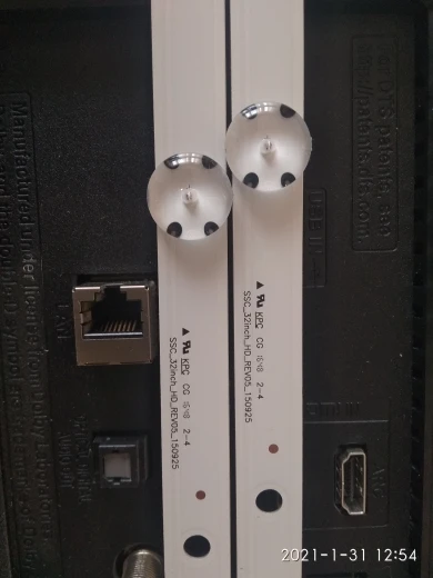 Заказывал комплект (2 шт) Светодиодных лент для LG 32LH51_HD . У одной планки минусовой вывод закорочен на алюминиевую подложку. Бракованная.