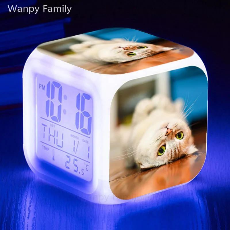 Очень красивый будильник с изображением кошки, 7 цветов, светящийся...