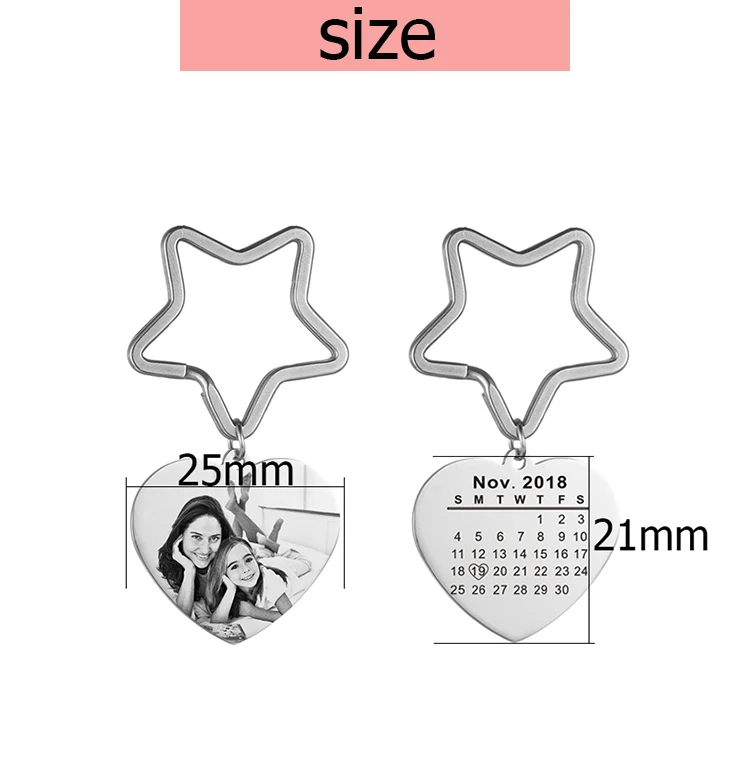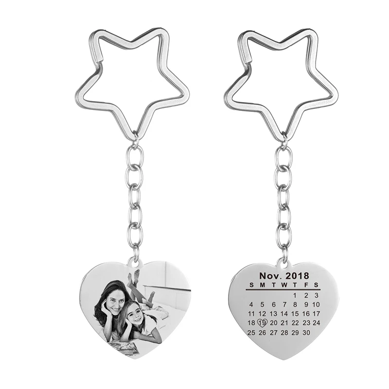 Персонализированные фото брелок-календарь из нержавеющей стали сердце кольцо печатный текст ключевая цепочка изображений для мужчин женщин на заказ ювелирные изделия