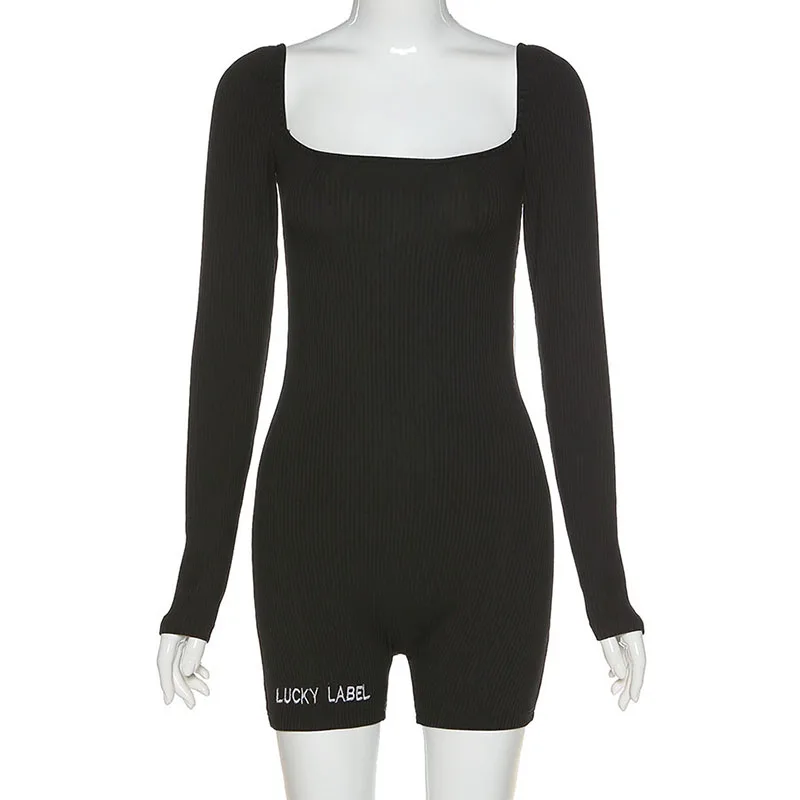 Комбинезон женский в рубчик с квадратным вырезом, пикантный облегаю...