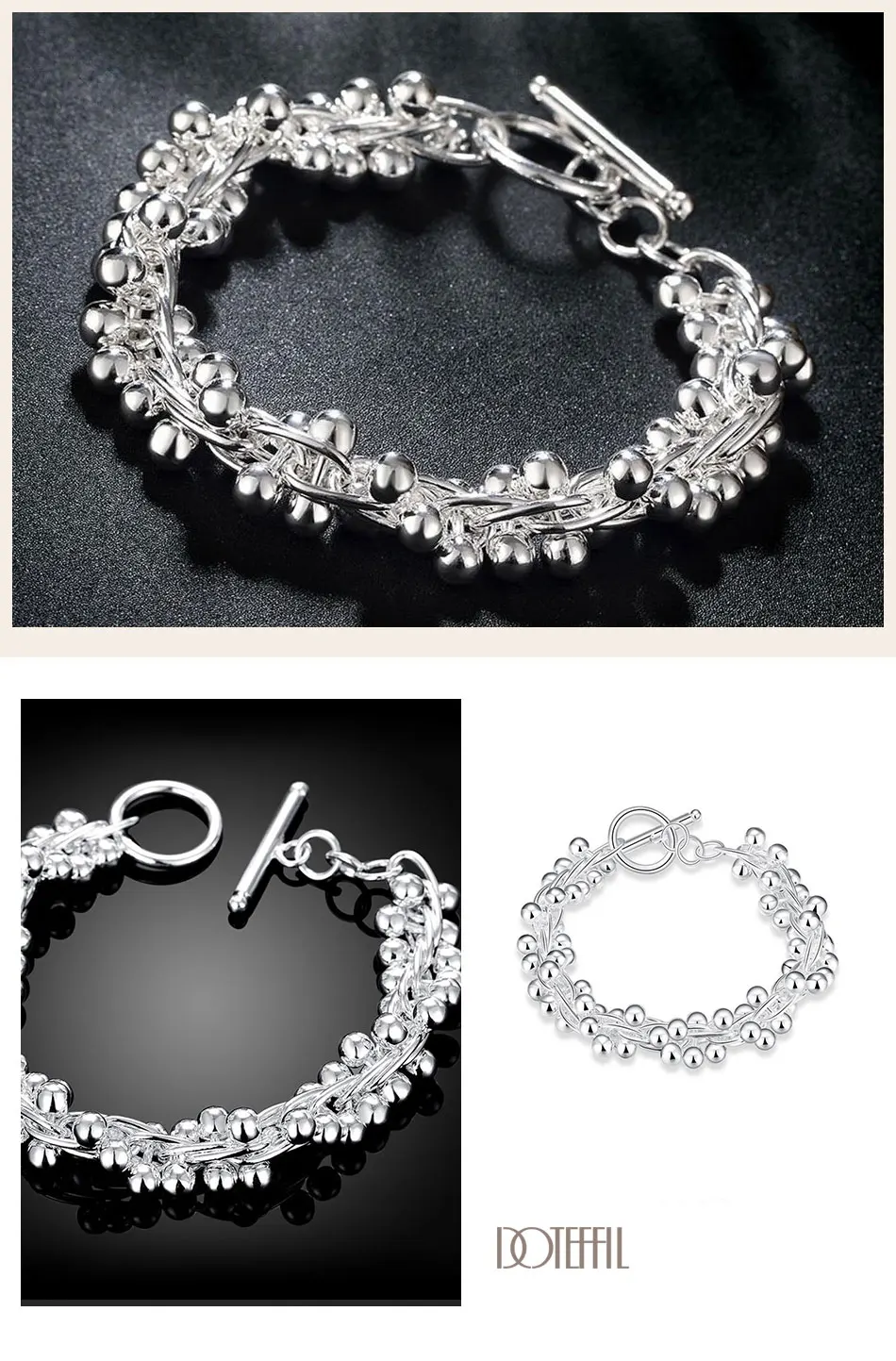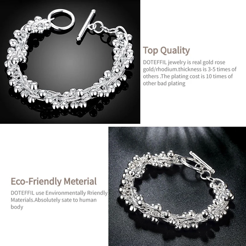 DOTEFFIL, Стерлинговое Серебро 925 пробы, шарики винограда, сферический браслет для женщин, ювелирные изделия для свадьбы, помолвки, вечеринки
