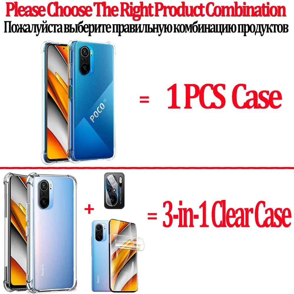 Poco F3 Чехол Poko X3Pro чехол прозрачный чехол+гидрогелевая пленка+камера,Мягкая ТПУ противоударный Задняя защитная чехлы Xiaomi Poco X3 Pro NFC PocoX3 PocoF3 Case Pocophone F3 X-3 Силиконовые Чехол Поко Ф3 x3 нфс