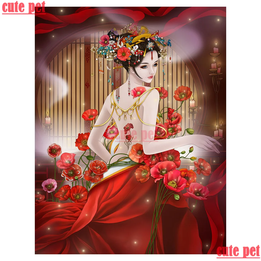 Набор для алмазной вышивки сделай сам, милая 5D Вышивка с животными, японская сексуальная женщина, круглые и квадратные искусственные бриллианты