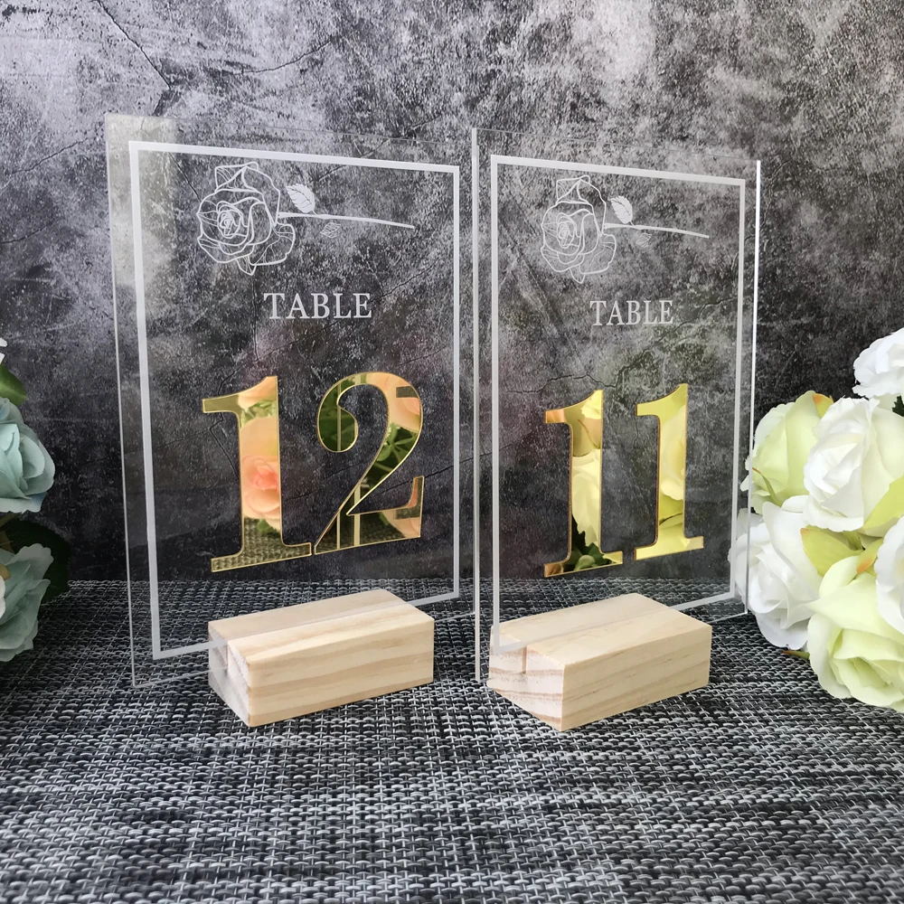 Прозрачные Акриловые цифры на стол, золотосеребро номера свадебных столов, акриловые цифры, Свадебный декор, прозрачные акриловые свадебные вывески