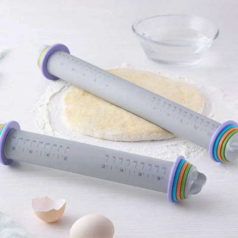 Силиконовая антипригарная скалка для выпечки, скалка для помадки с тиснением, регулируемые весы для торта, теста, ролик для выпечки, кухонный инструмент для выпечки