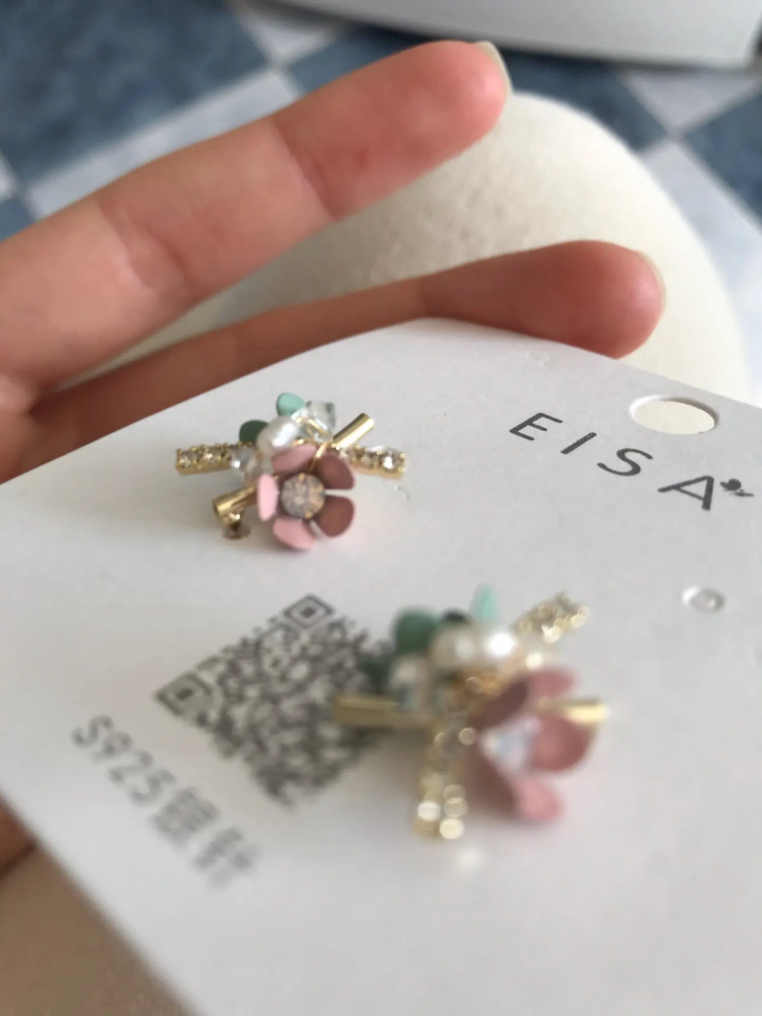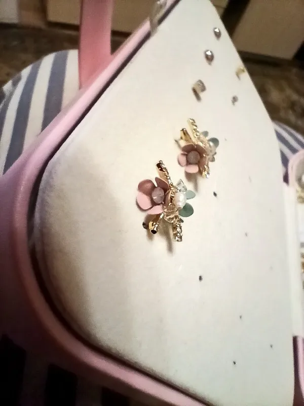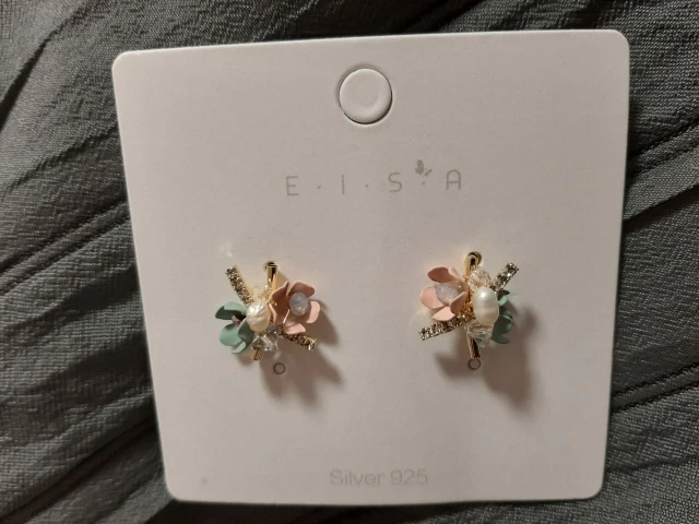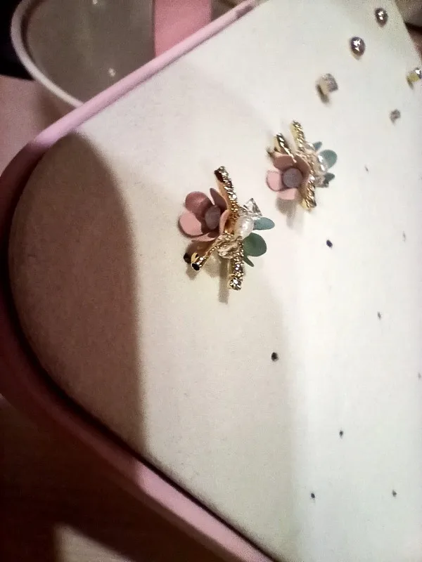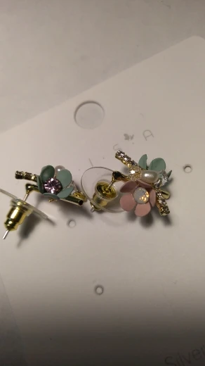 Заказ оформила 24.12.20. Брибыл на почту 12.01.21. Долго сомневалась насчёт сережек, но оказалось зря. Они просто очумительно красивые. Понятно дело, что не серебро, а бижутерия. Но так аккуратно сделано! Лёгкие, милые. Камешки блестят. Лепестки тоже какой-то металл, покрытый то-ли матовой краской или напылением такое. Напоминает зефирку или из марципана. Вся это красота собрана на золотистую проволку и прикручено к основанию из дорожки с камешками. Её не видно. Поначалу думала все развалится, такое все нежно воздушное. Но нет, оказались крепкие. Камешек в розовом цветке молочной белый и как будно внутри переливаются лучики заходящего солнца. Я в восторге! Стоят 190 руб. Вместе с купоном купила за 90 рублей. Просто сказка!