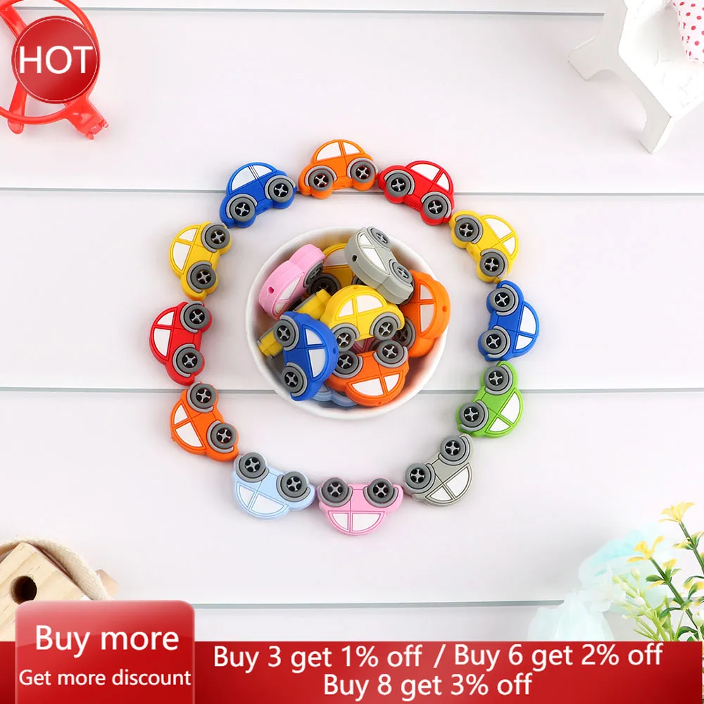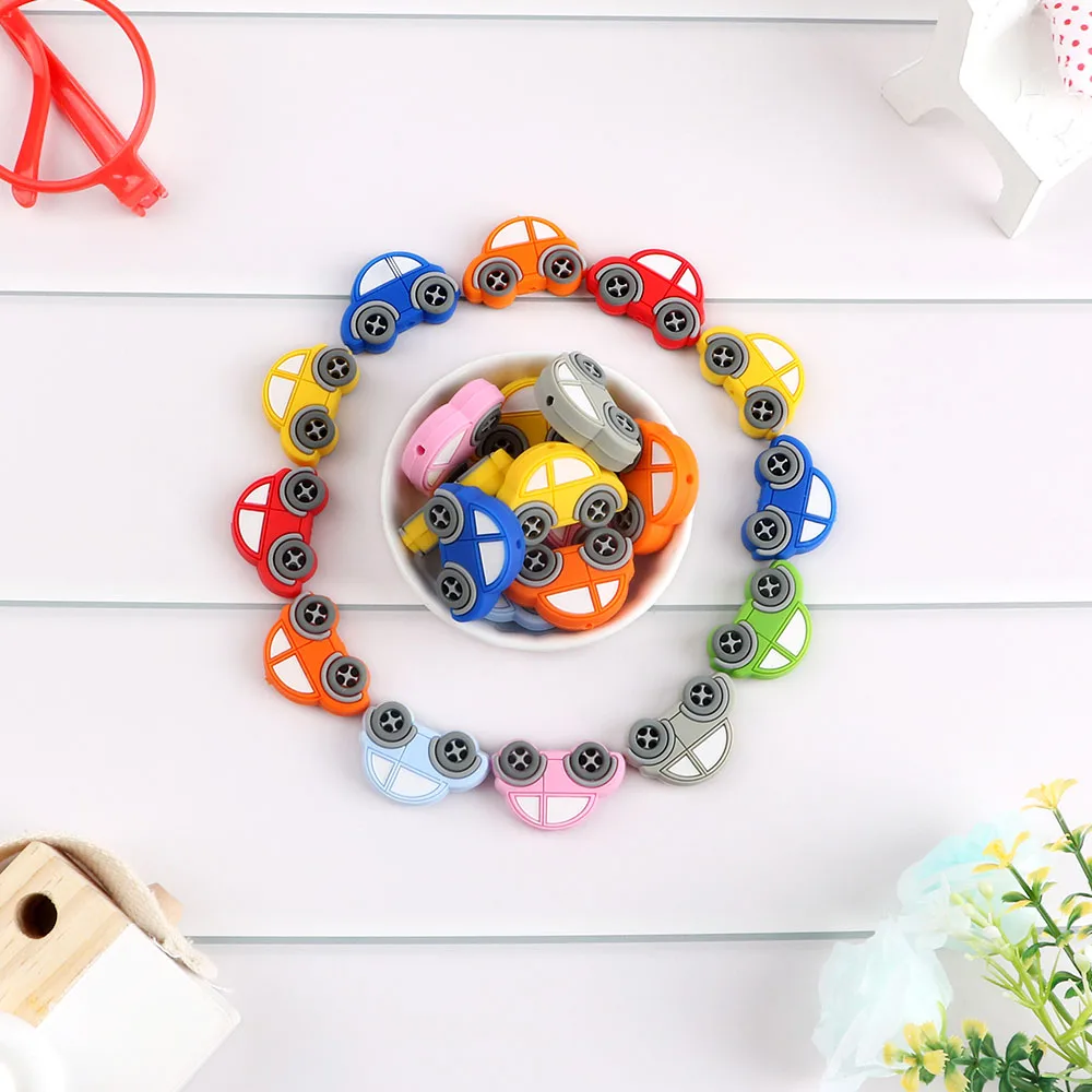 Kovict 10 шт.лот мини-автомобиль силиконовые бусины Детские Прорезыватели для зубов аксессуары из пищевого силикона